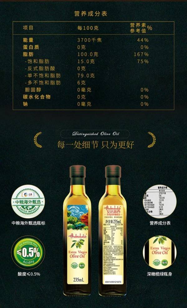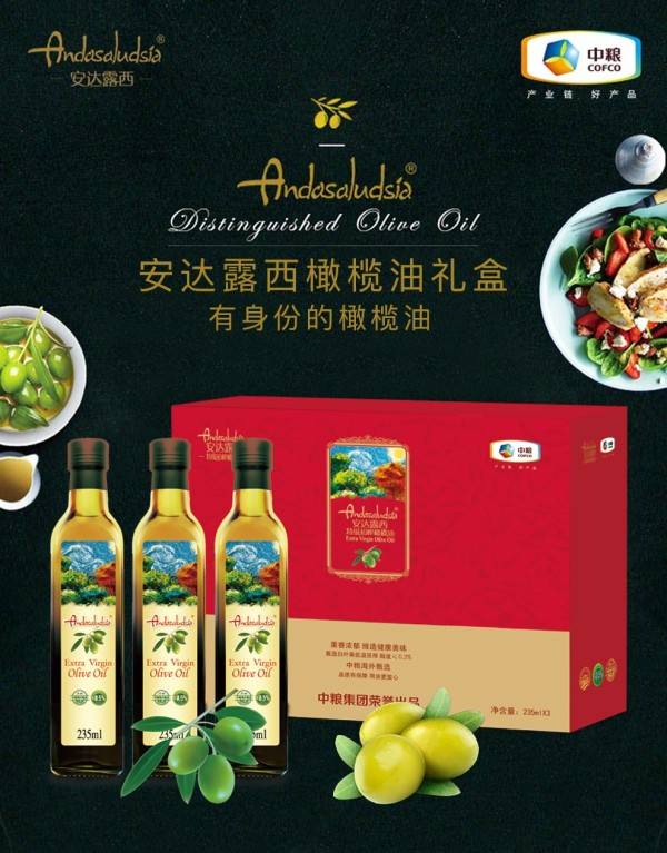 中粮安达露西亚橄榄油礼盒235ml*3瓶