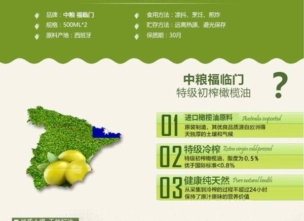 中粮福临门特级初榨橄榄油礼盒500ml*2