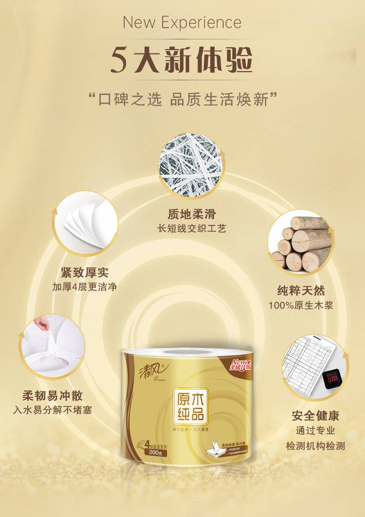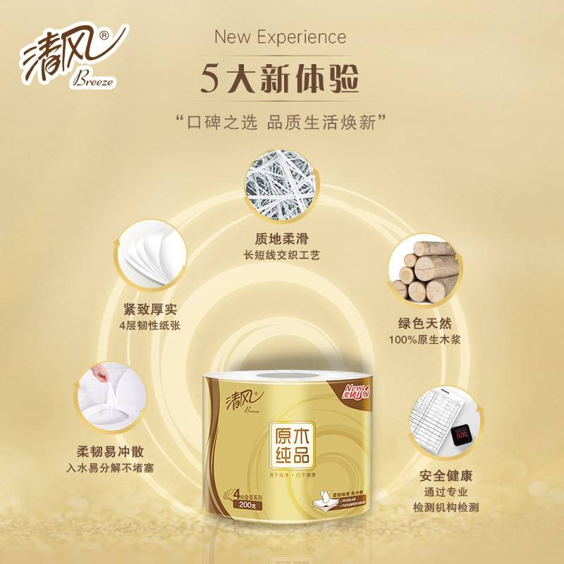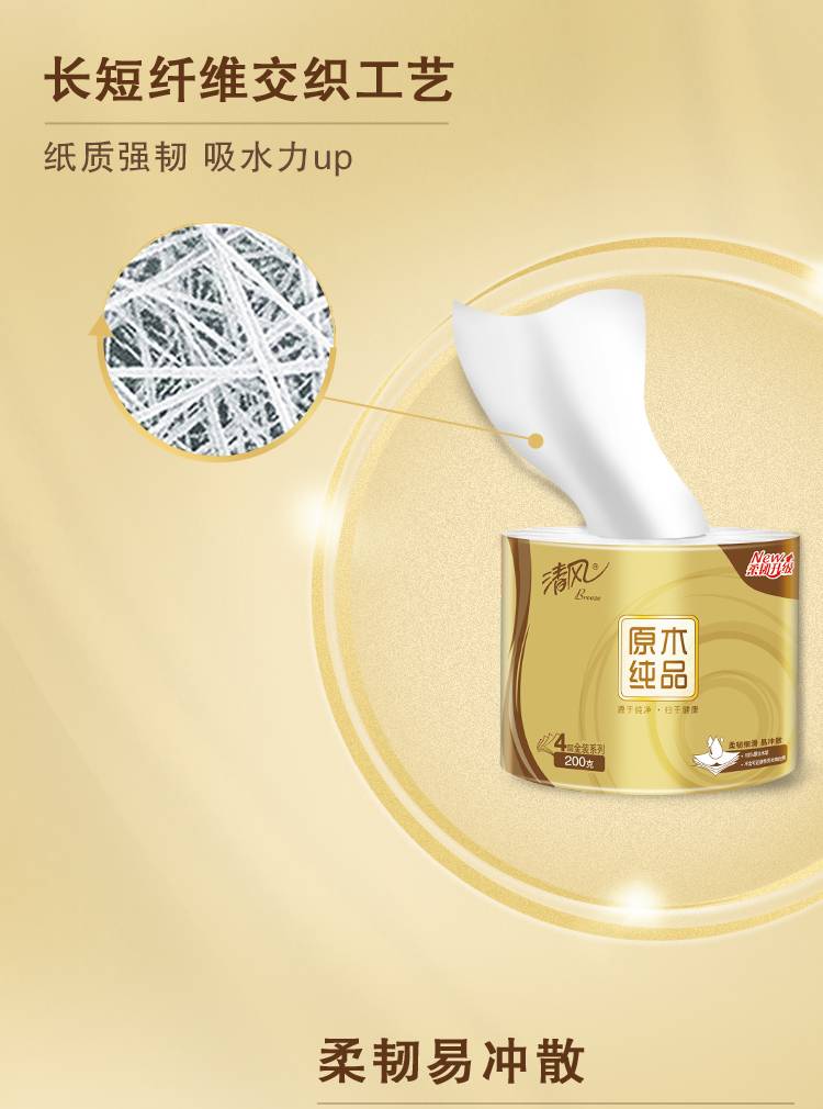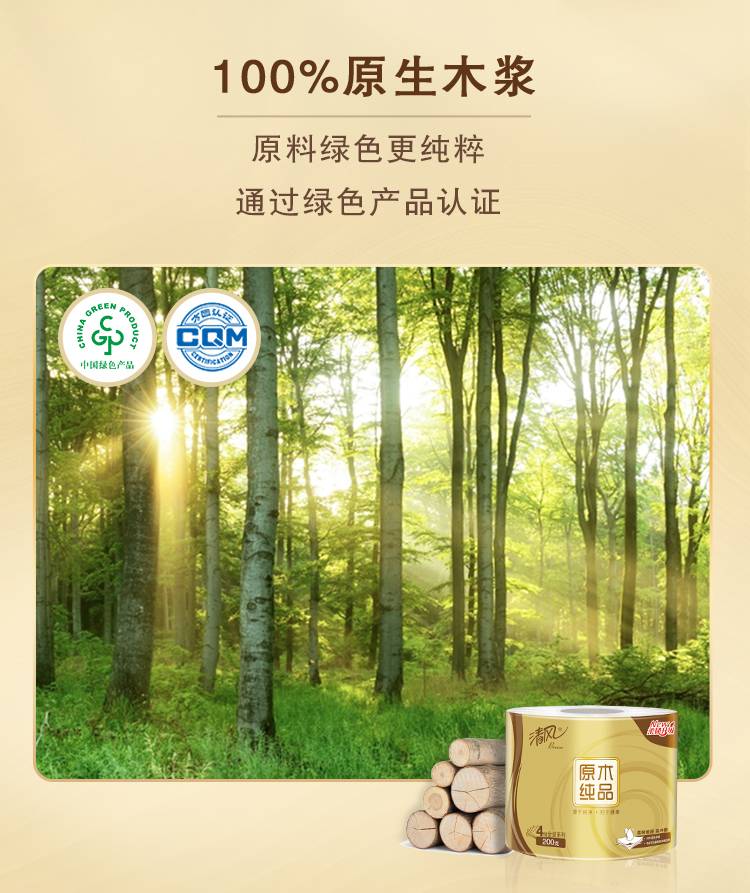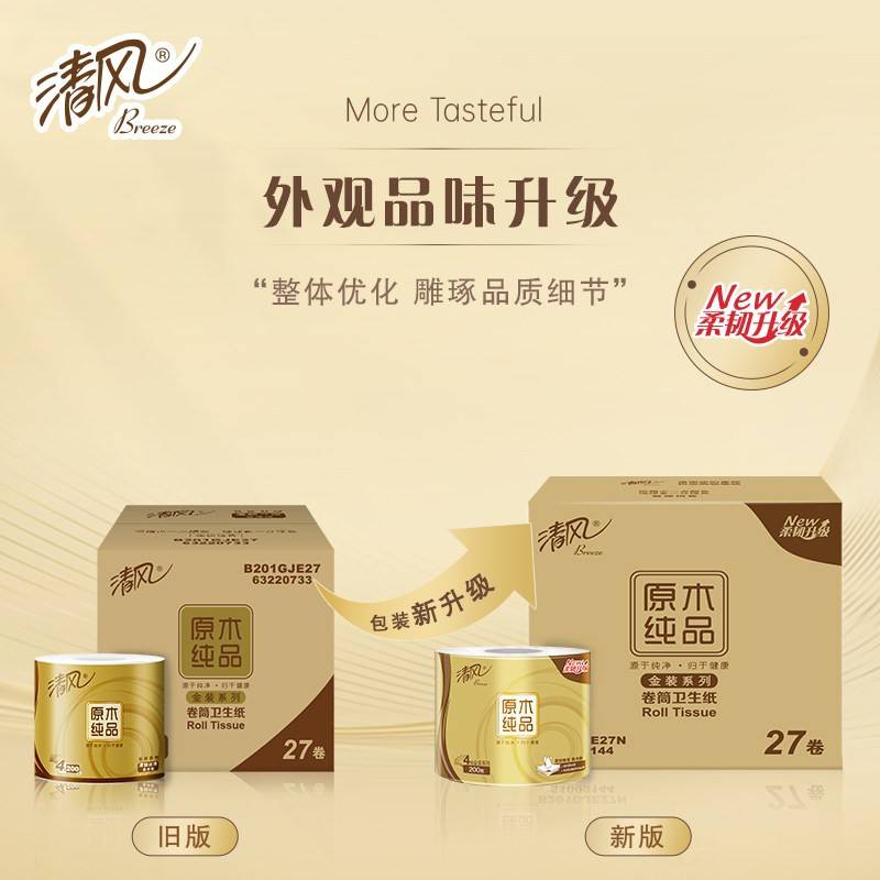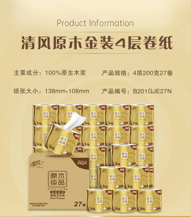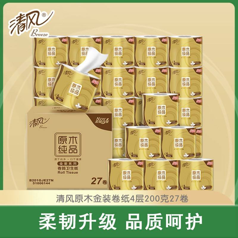 清风原木金装4层200克27卷卷筒纸