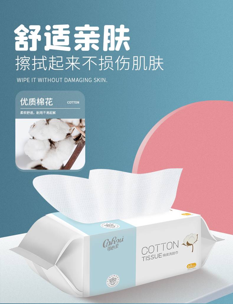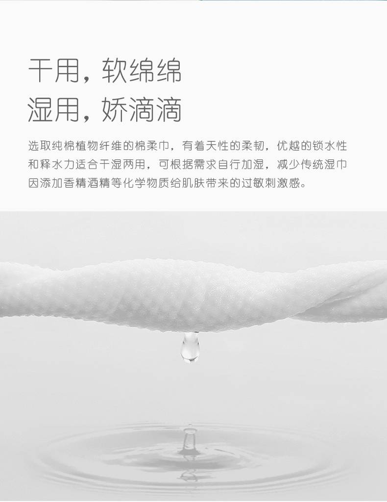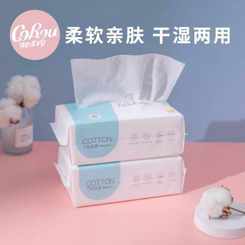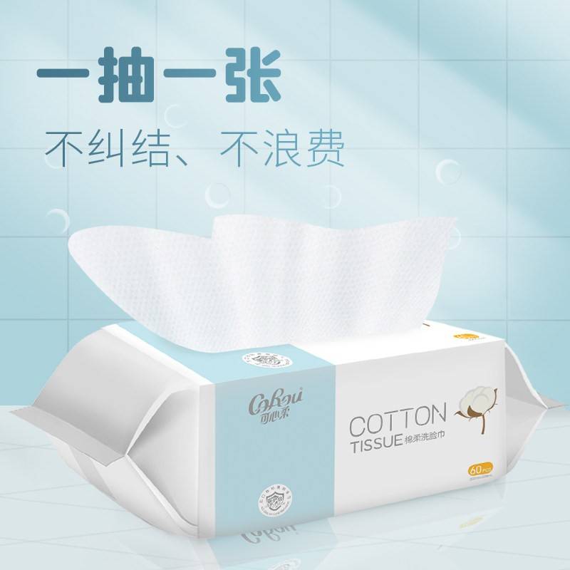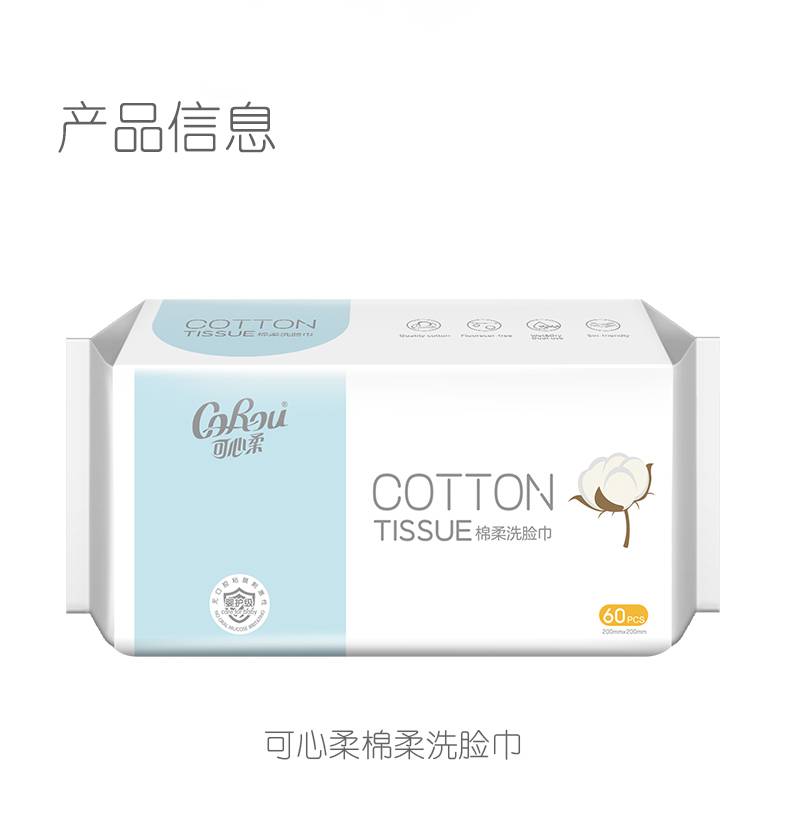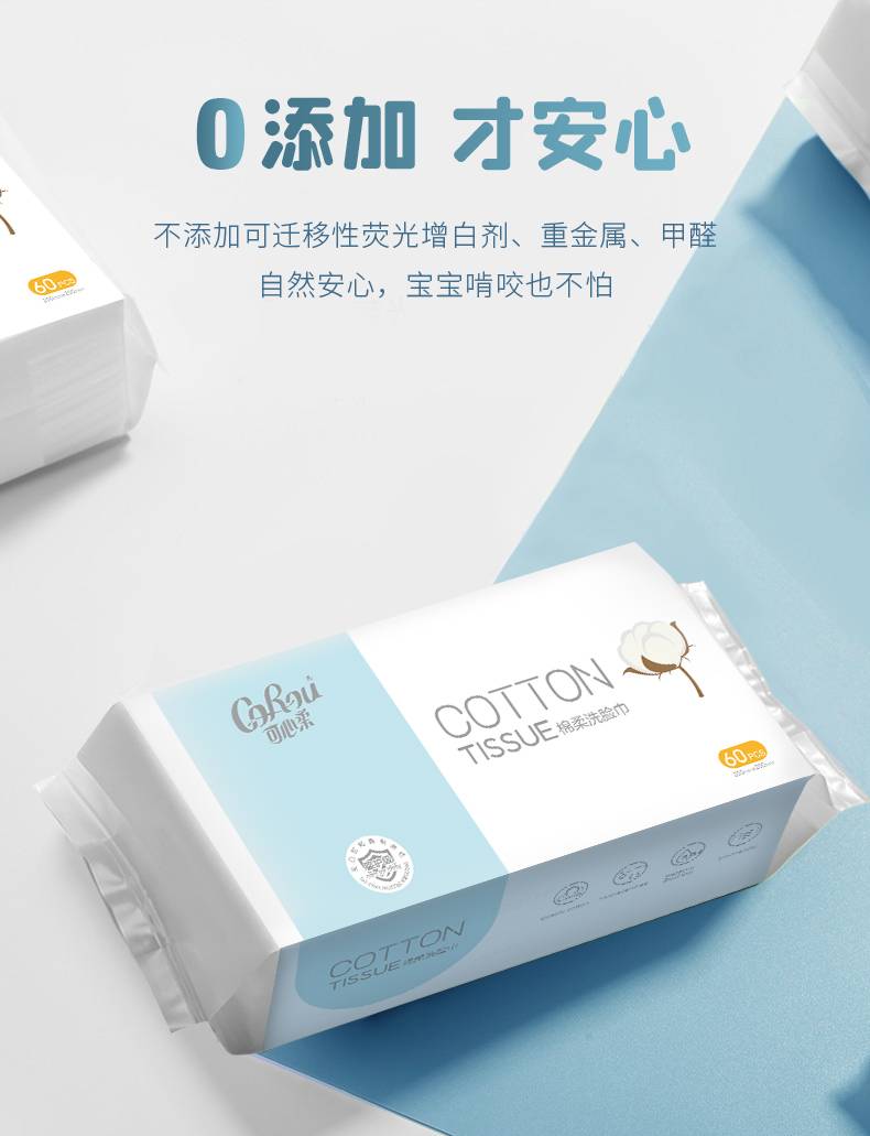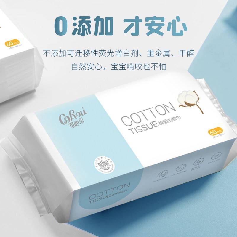 可心柔婴儿植物棉柔巾新生儿干湿两用洗脸巾加厚棉柔巾60抽4包