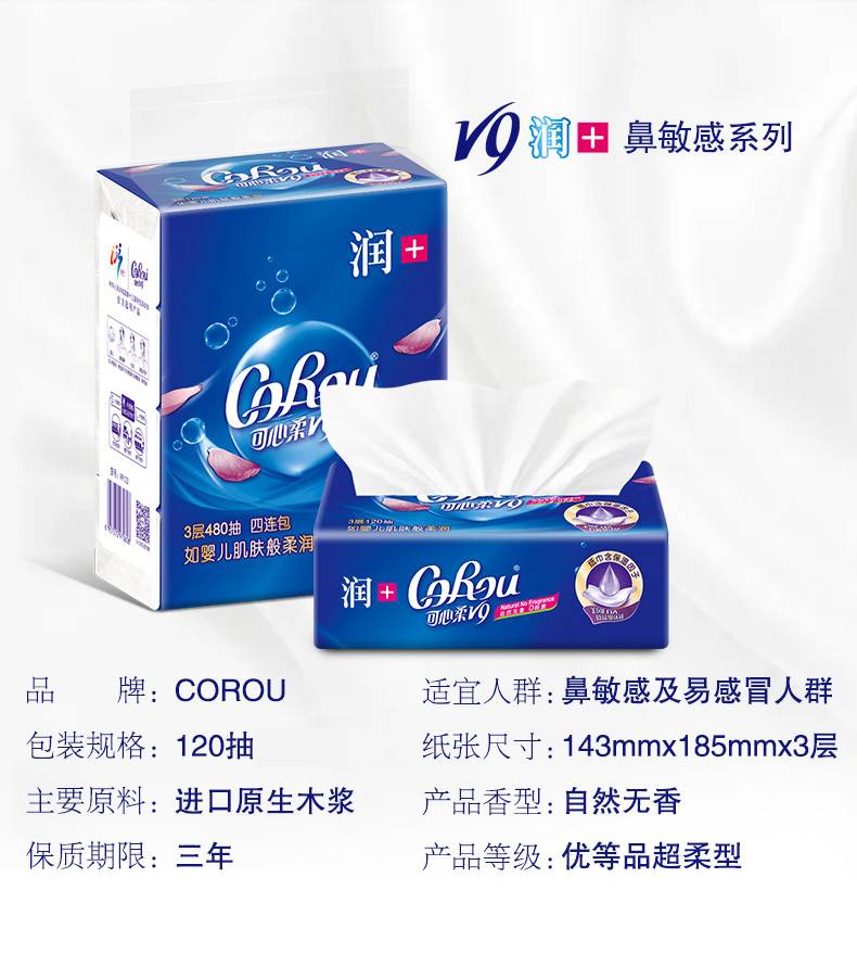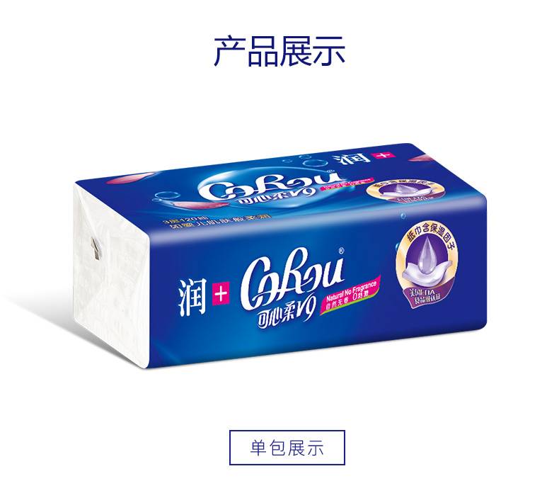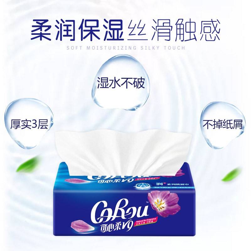 可心柔V9鼻子贵族保湿柔纸巾120抽12包量贩装面巾纸