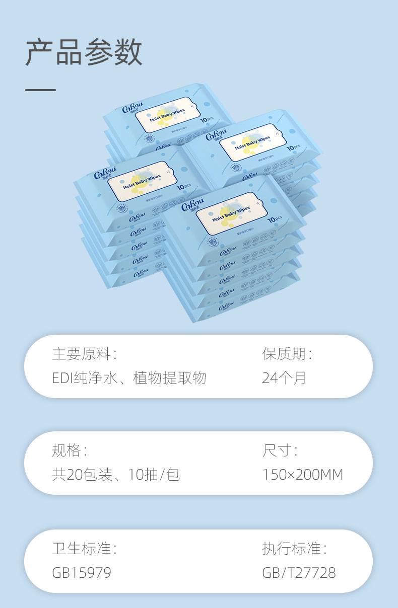 可心柔婴儿湿纸巾新生儿手口专用婴幼儿屁屁加厚10抽*20包