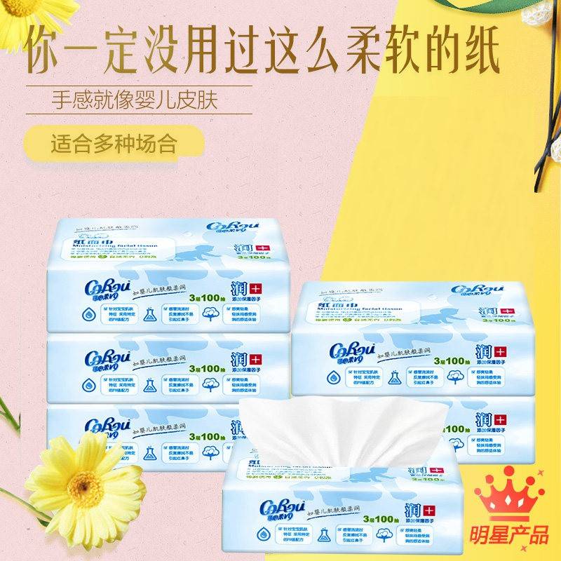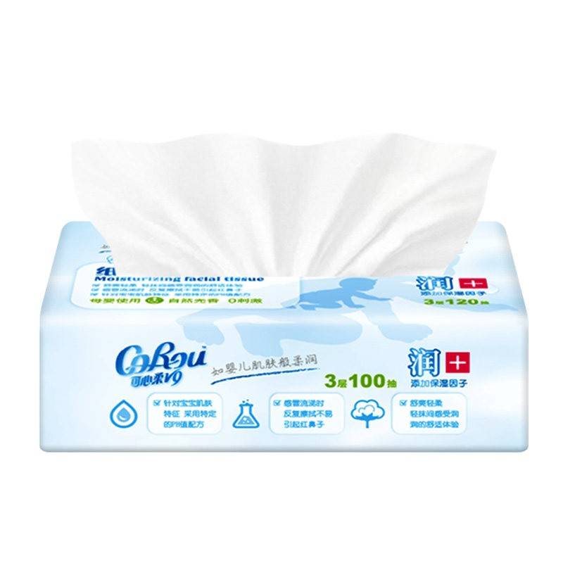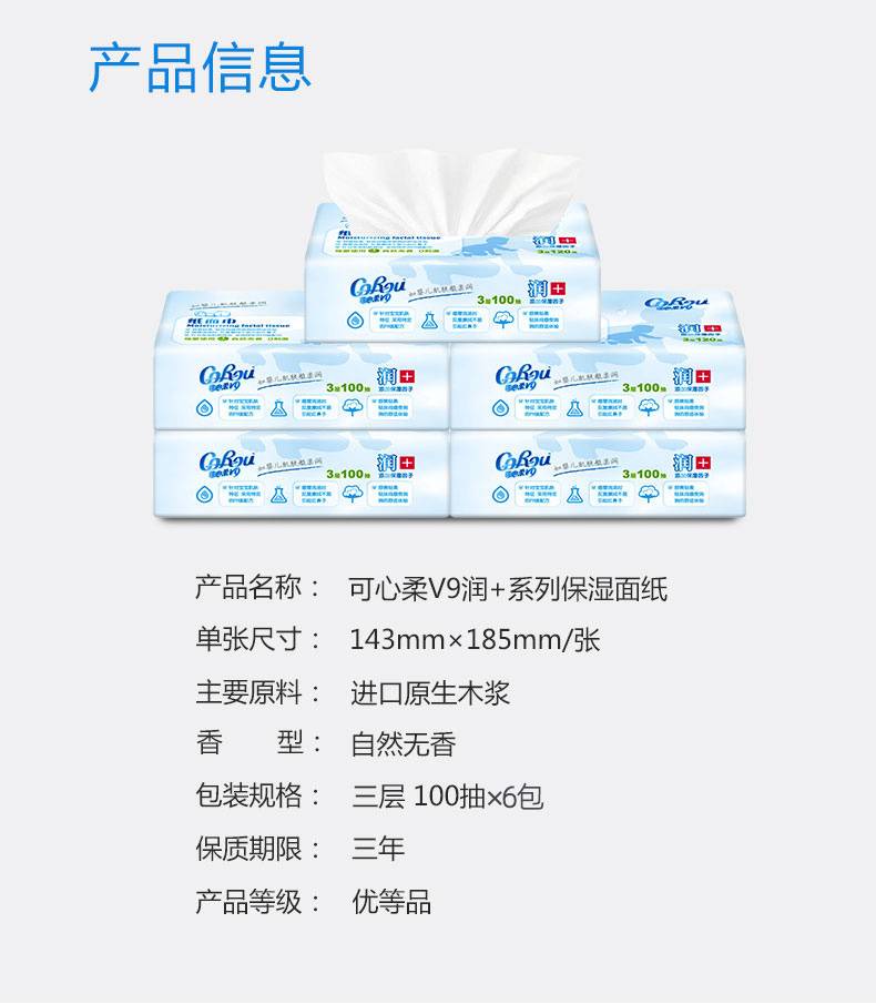 可心柔V9婴儿柔纸巾宝宝专用超柔抽纸新生儿云柔巾100抽6包