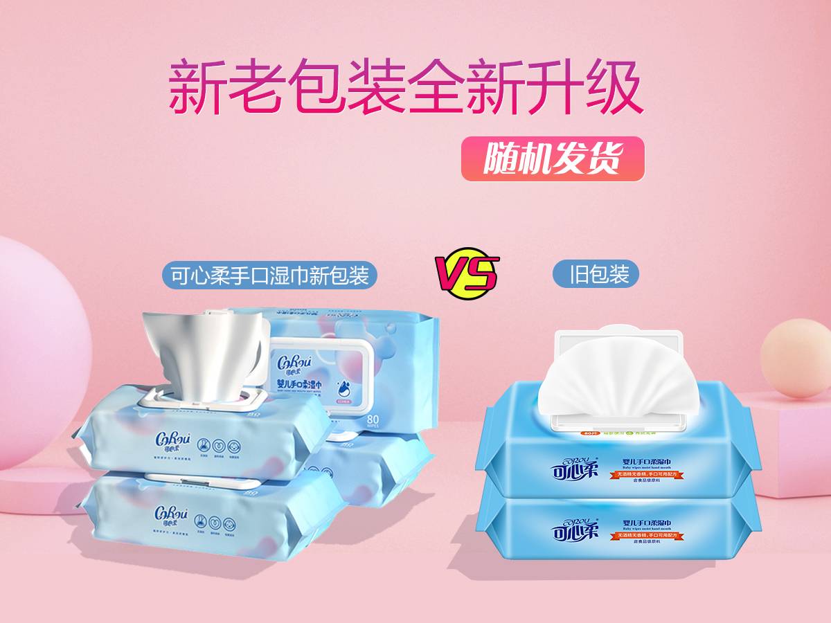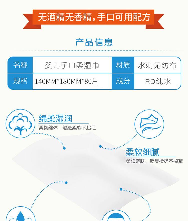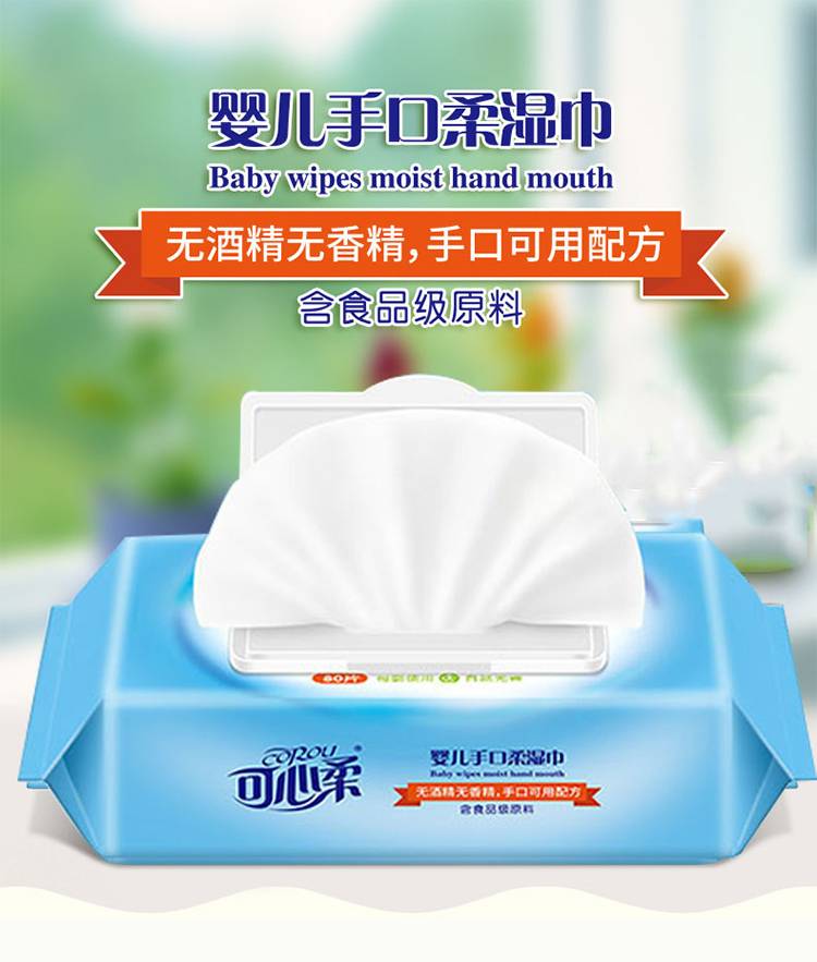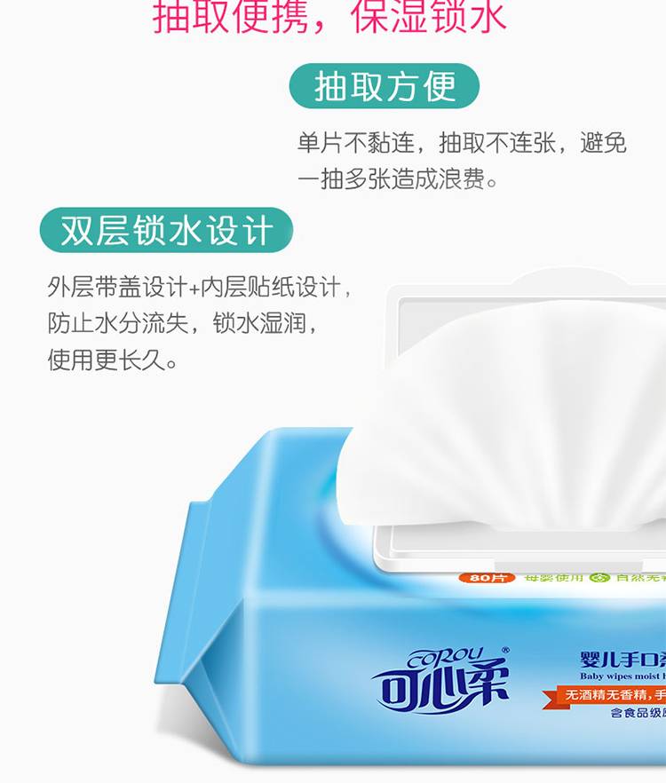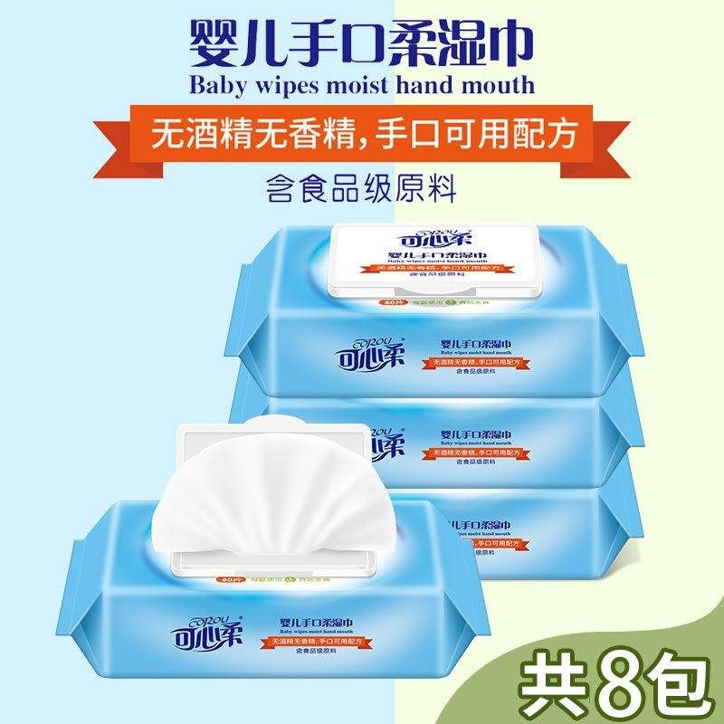 可心柔湿巾婴儿手口专用纯水湿纸巾80片8包