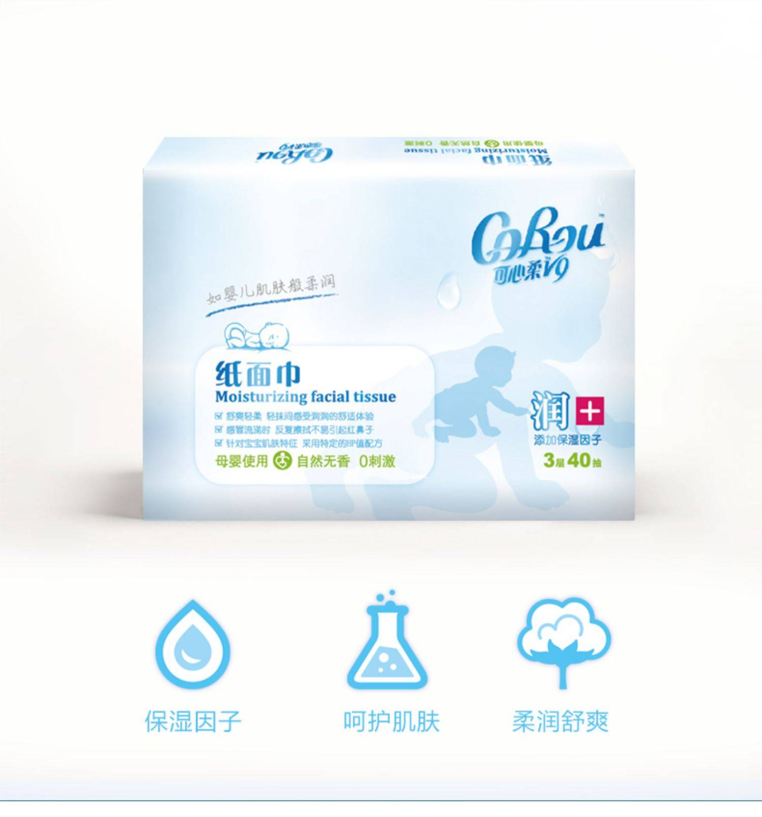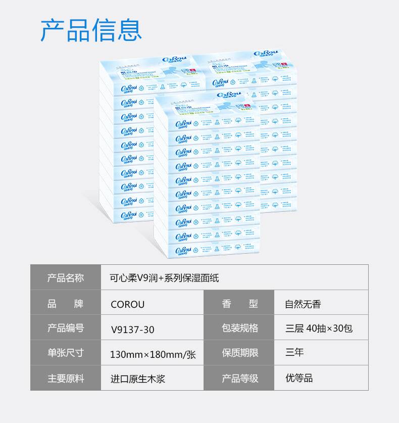 可心柔V9宝贝系列婴儿柔润抽纸纸巾3层30包