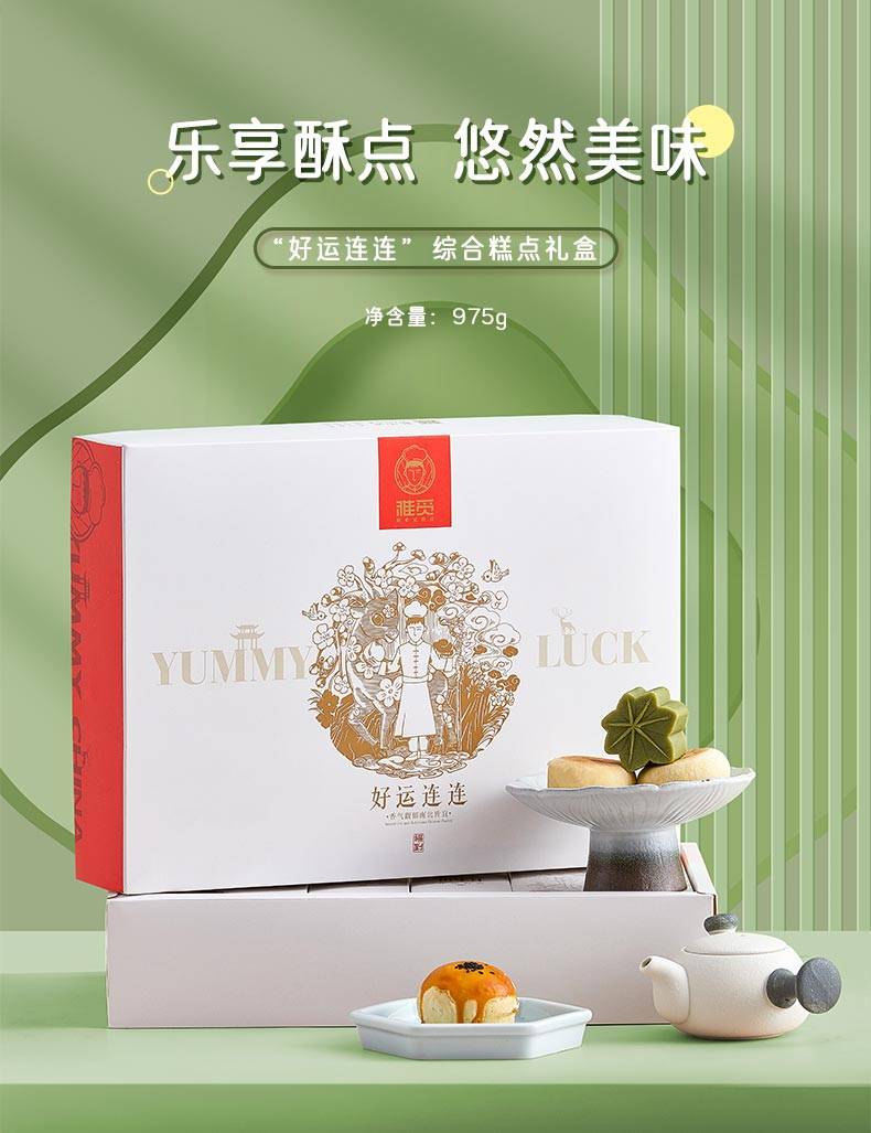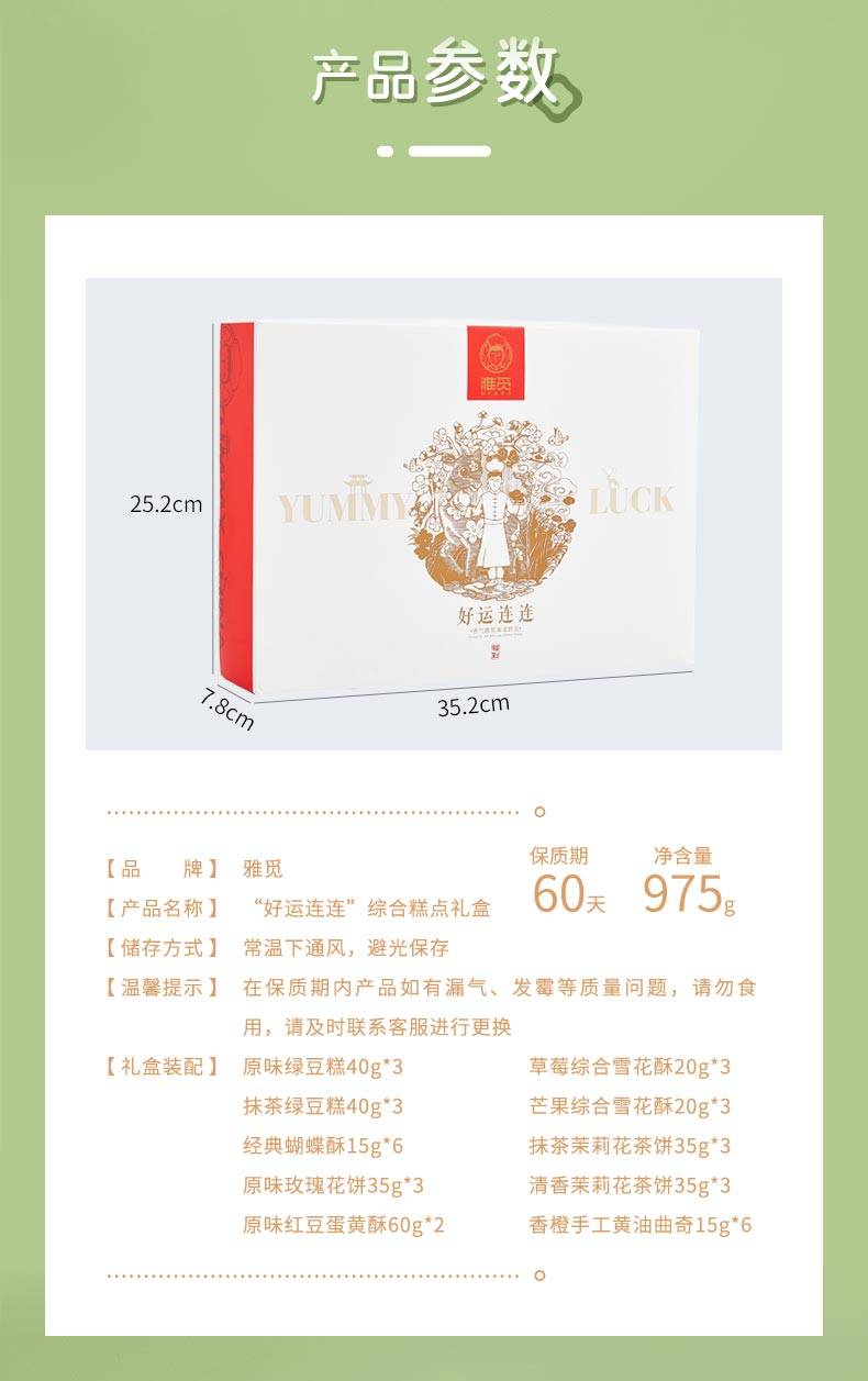 雅觅 绿豆糕鲜花饼手工蛋黄酥 好运连连礼盒975g 35枚
