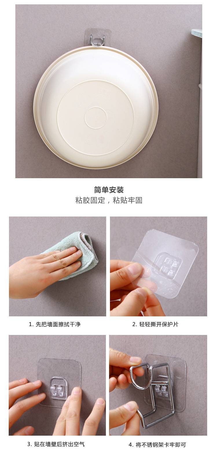 熊诺不锈钢脸盆架厨房壁挂脸盆挂钩浴室免打孔收纳架多功能置物架