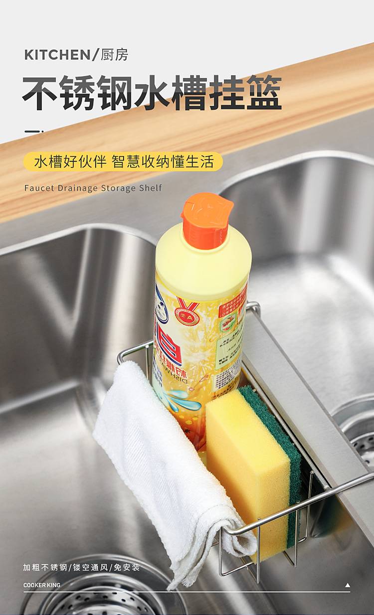 炊大皇 不锈钢水槽沥水架 收纳挂篮隔水篮厨房收纳架挂架