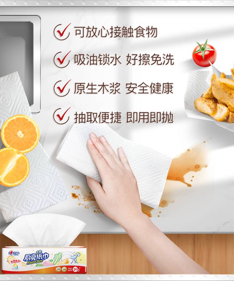 KDT170(箱装)心相印70抽塑装无印花厨房纸巾单提