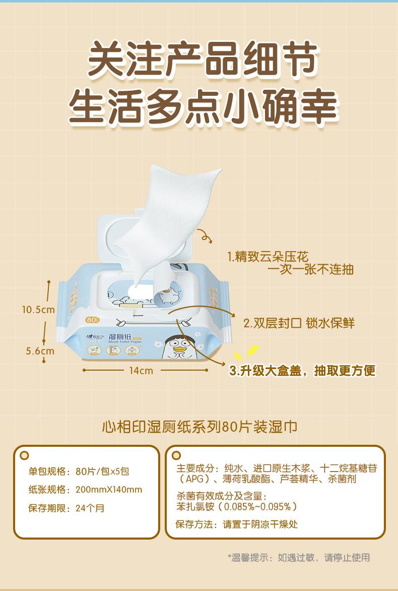心相印湿厕纸湿巾深层除菌卫生湿纸巾湿厕纸80片x5包