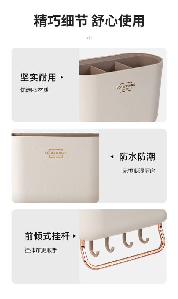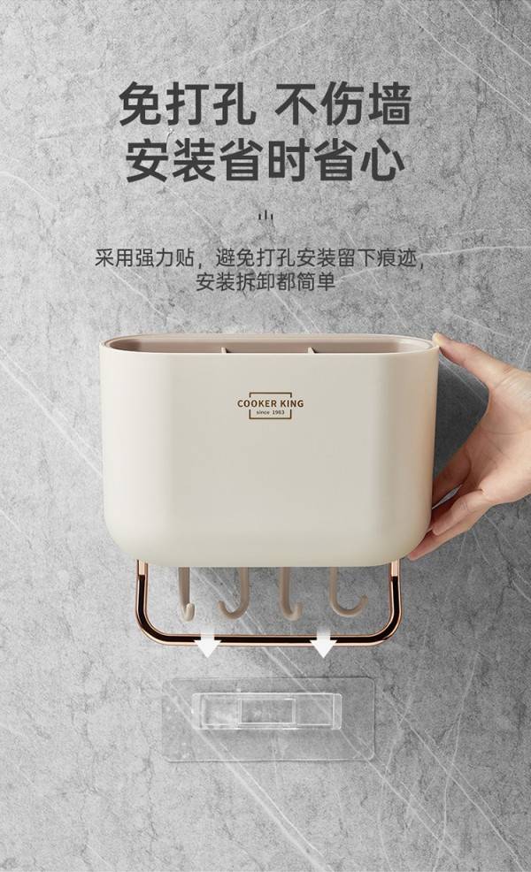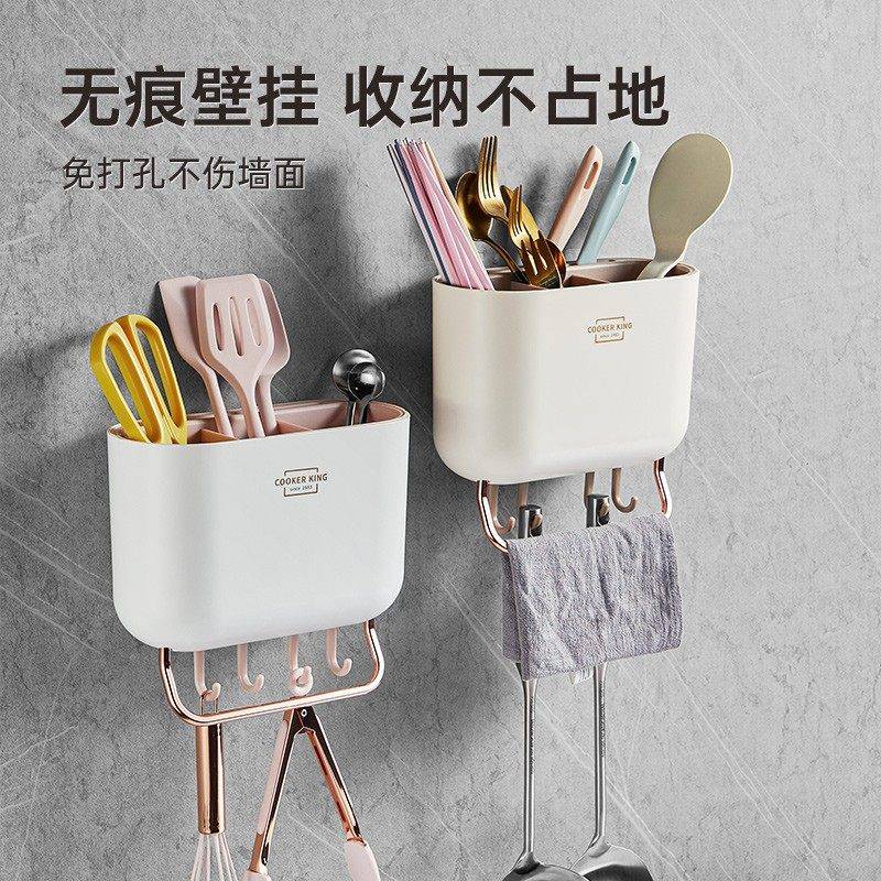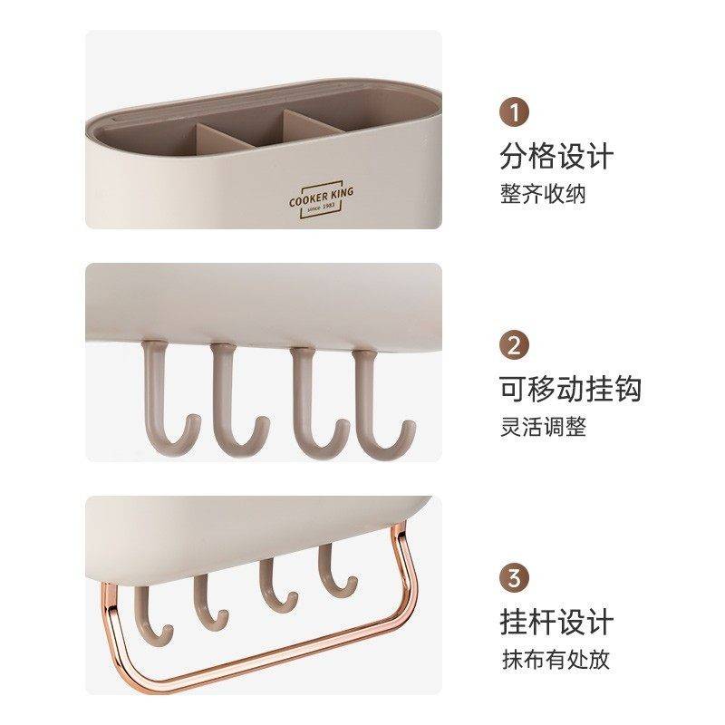 炊大皇置物架收纳架锅铲挂钩旋转挂杆免打孔壁挂式厨房勺子家用