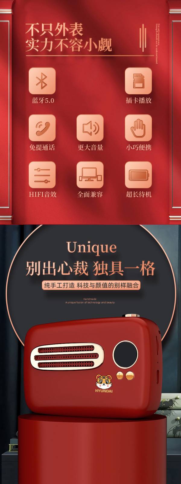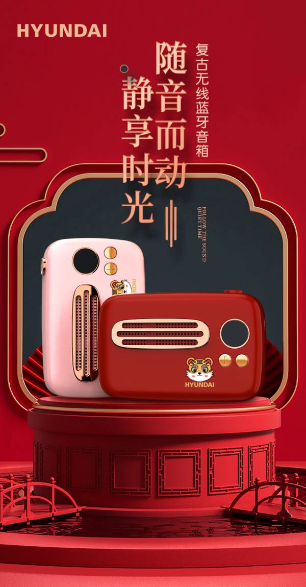 现代HYUNDAI-复古便携蓝牙音箱-国潮版
