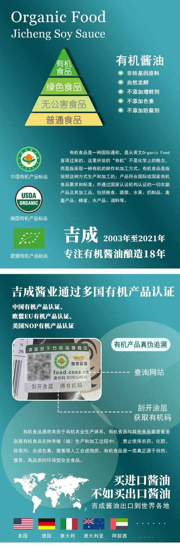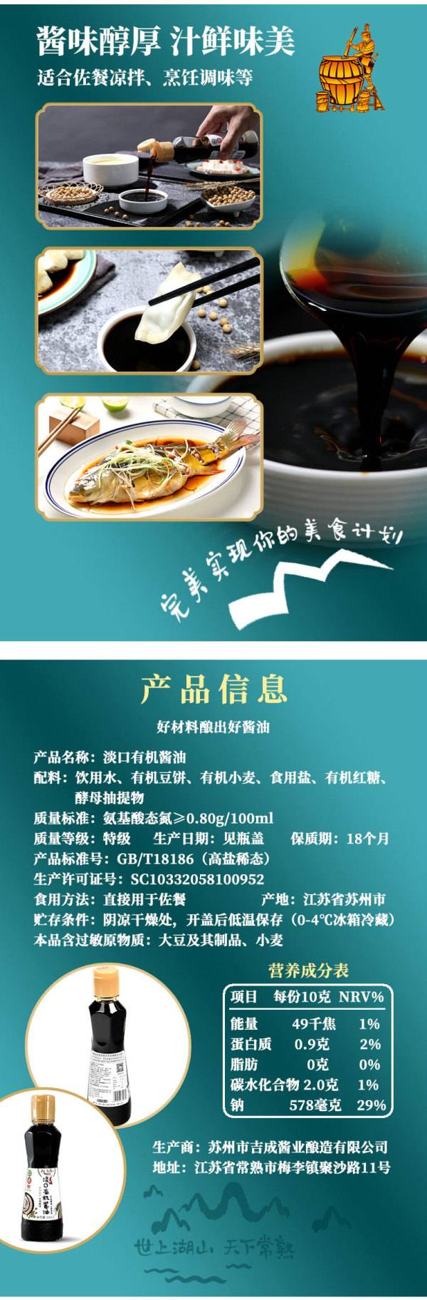 淡口有机酱油365天酿造吉成儿童家用生抽特级0添加2瓶装
