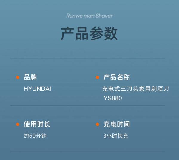 现代HYUNDAI-充电式三刀头家用剃须刀