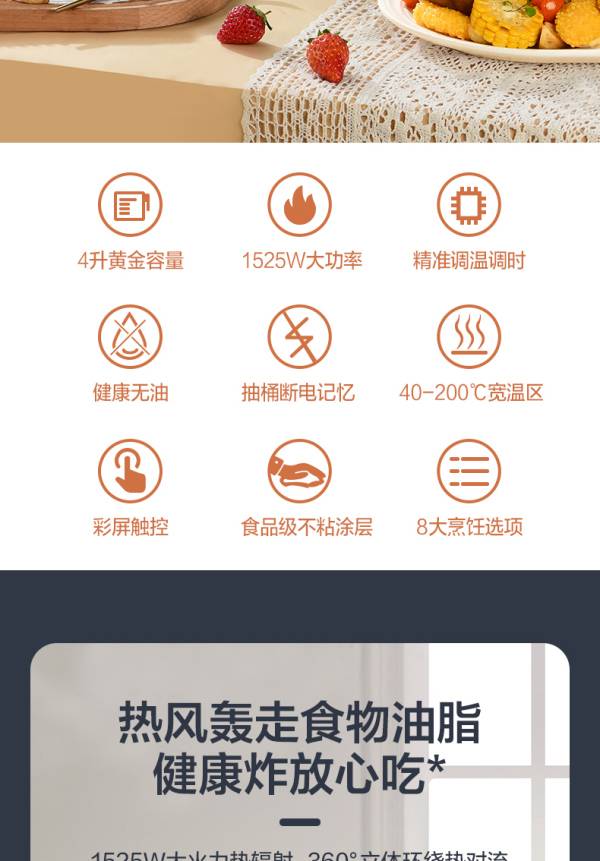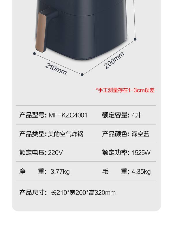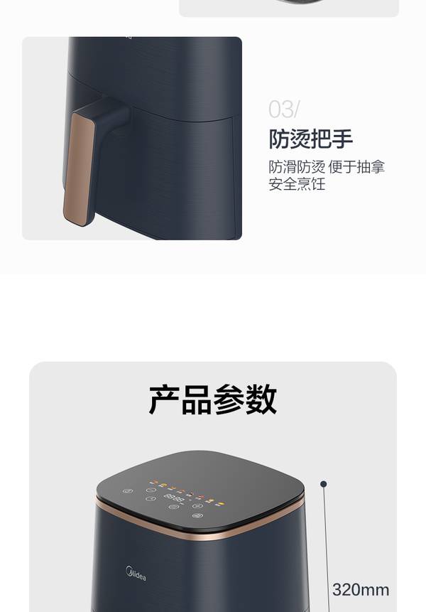 美的(Midea)空气炸锅 家用智能无油煎炸锅多功能全息触屏
