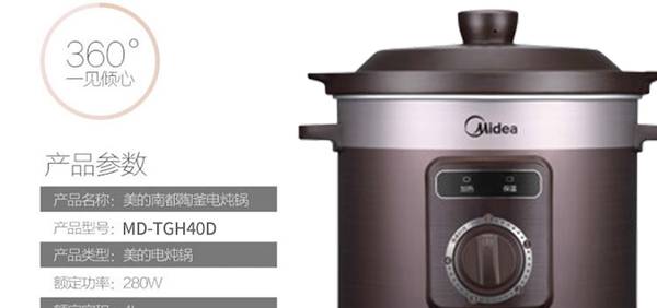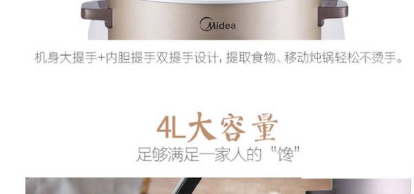 美的(Midea) 电炖锅电炖锅4L大容量陶瓷煲汤家用全自动