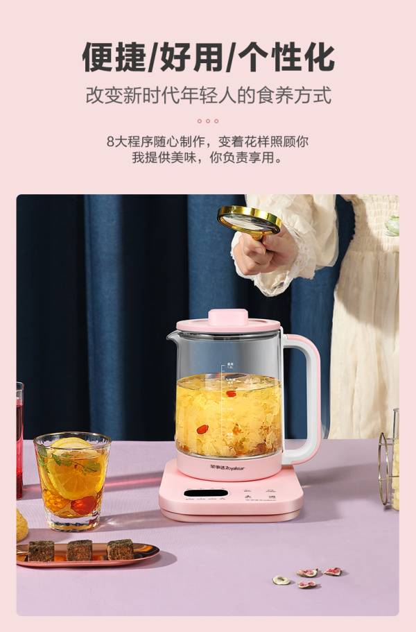 荣事达养生壶家用全自动多功能玻璃电热花茶壶办公室小型煮茶器