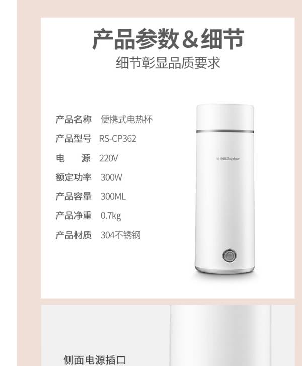 荣事达电热水杯300W功率RS-CP362