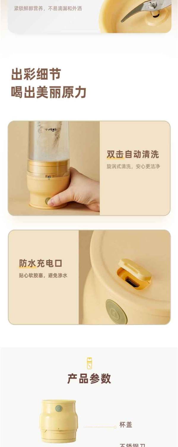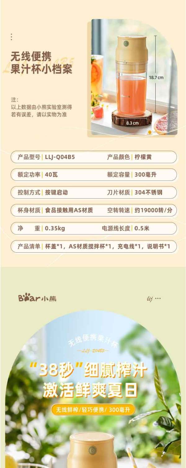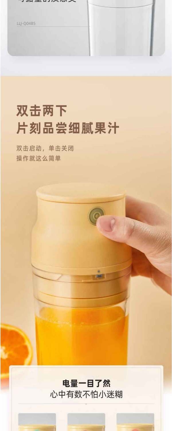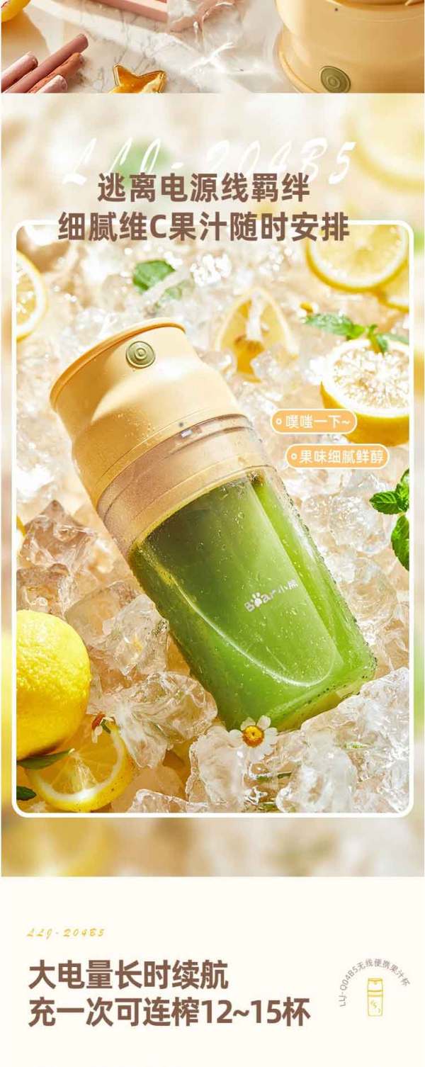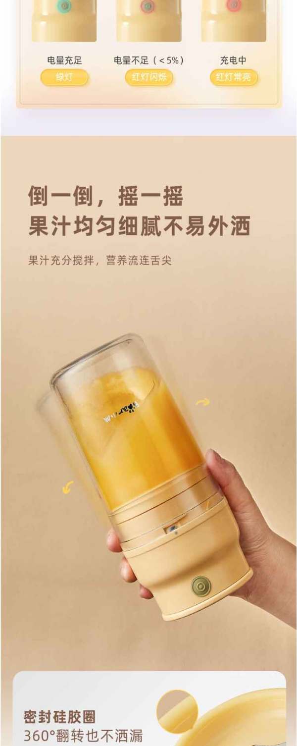小熊(Bear)便携式榨汁机家用水果小型充电迷你榨汁杯