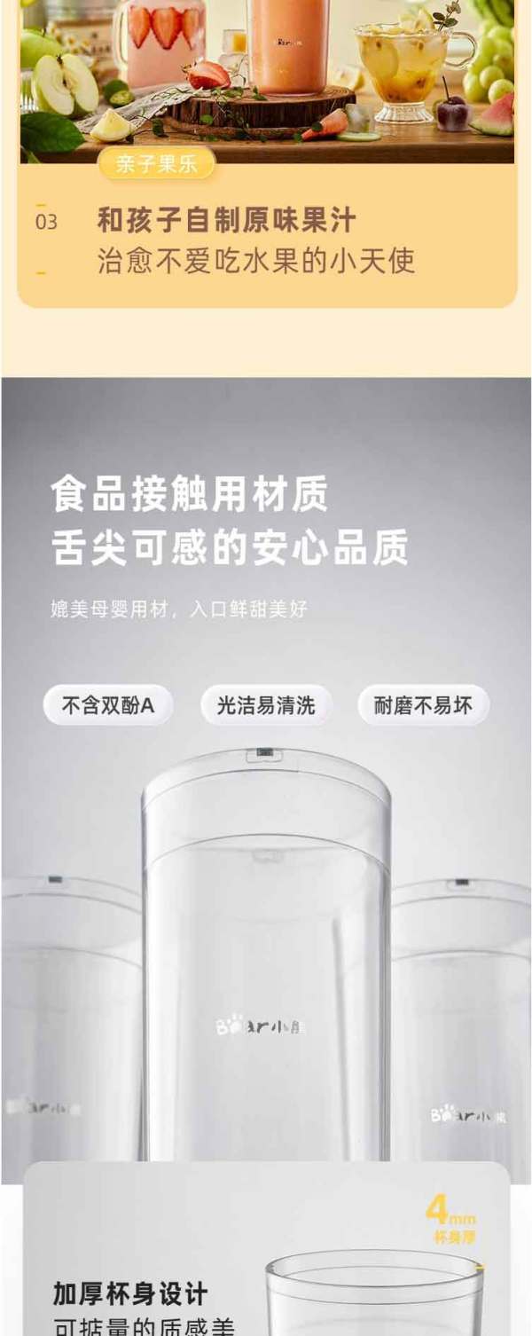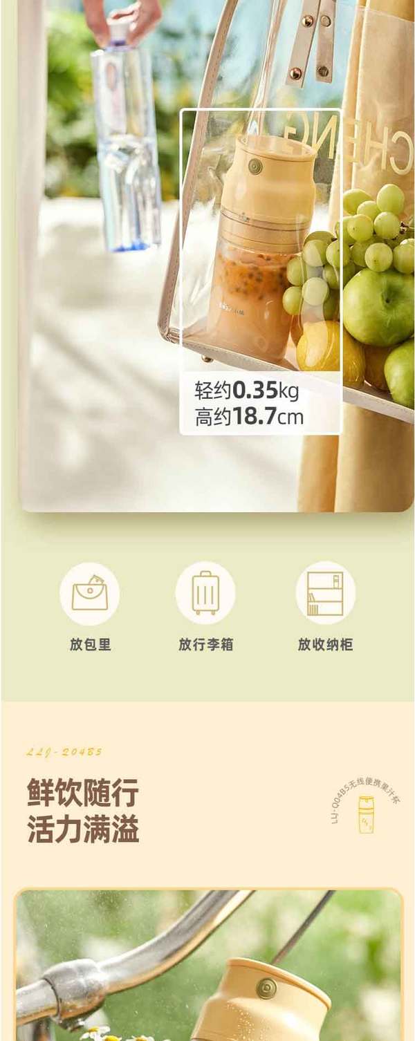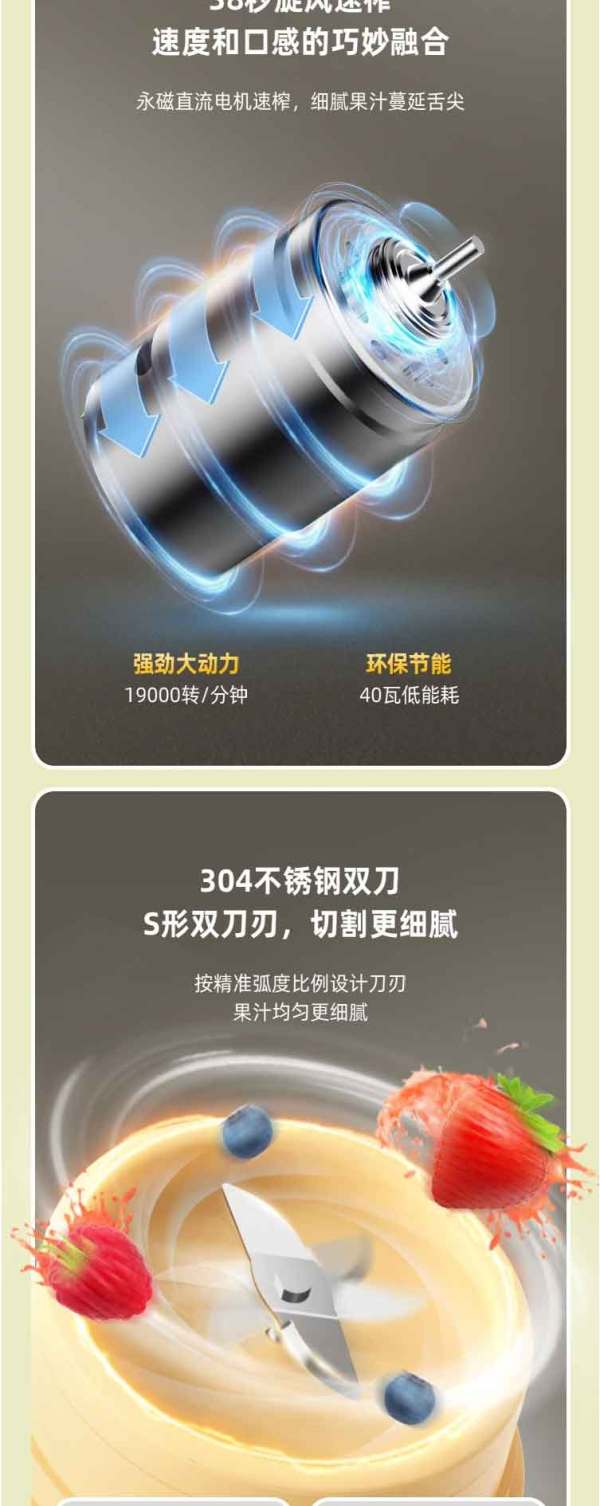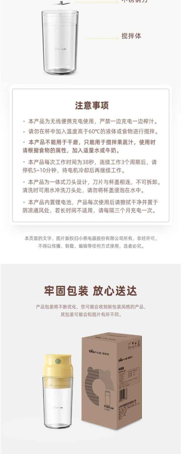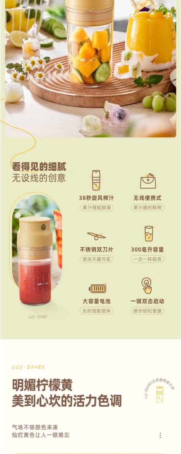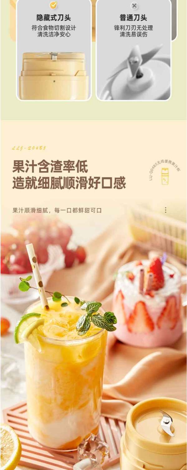 小熊(Bear)便携式榨汁机家用水果小型充电迷你榨汁杯