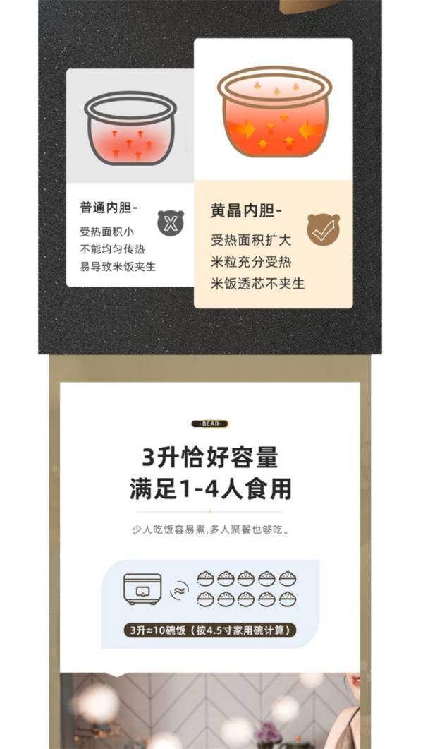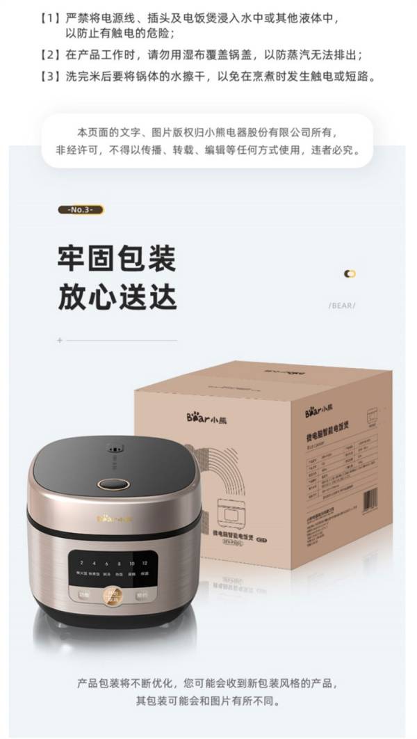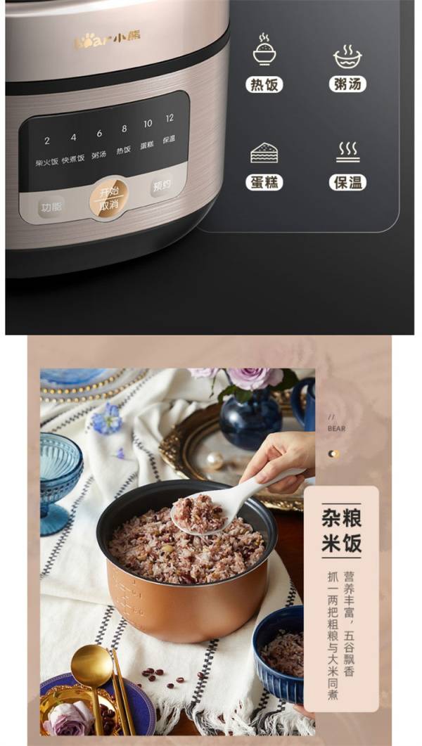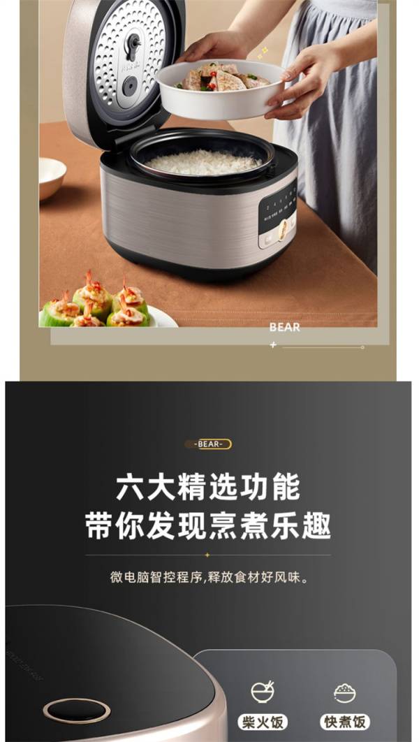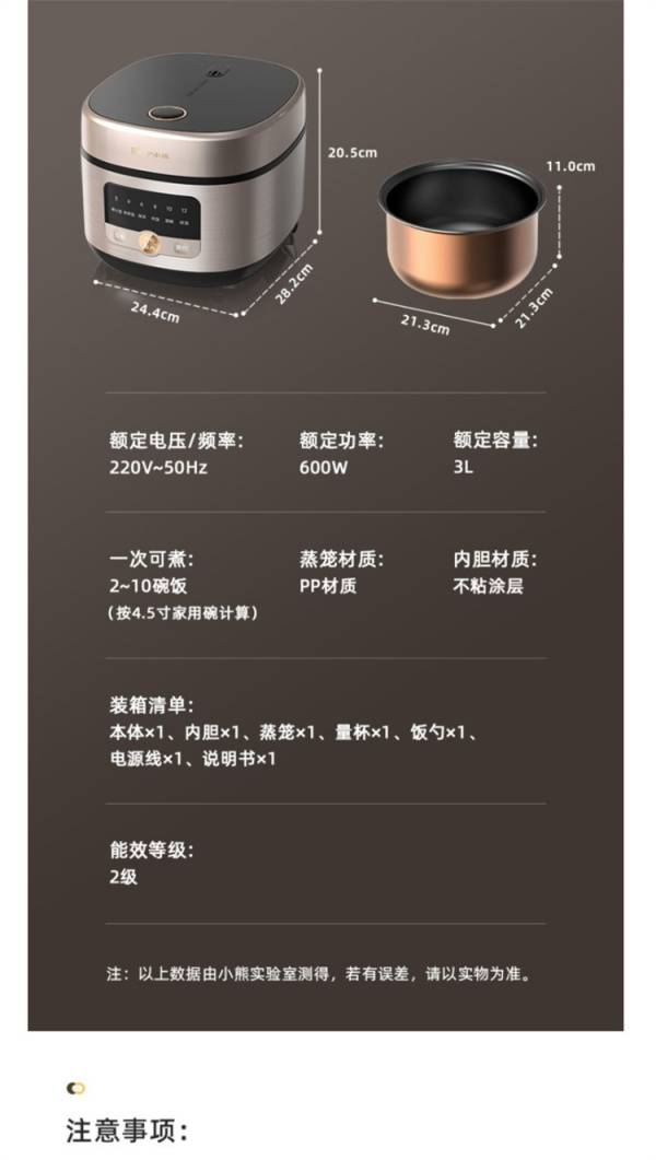 小熊(Bear)电饭煲 电饭锅小3L家用1-4人金属机身配蒸
