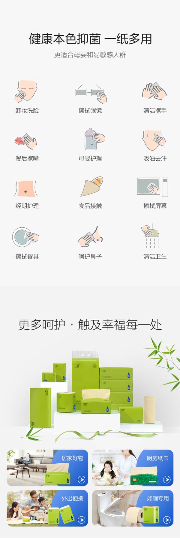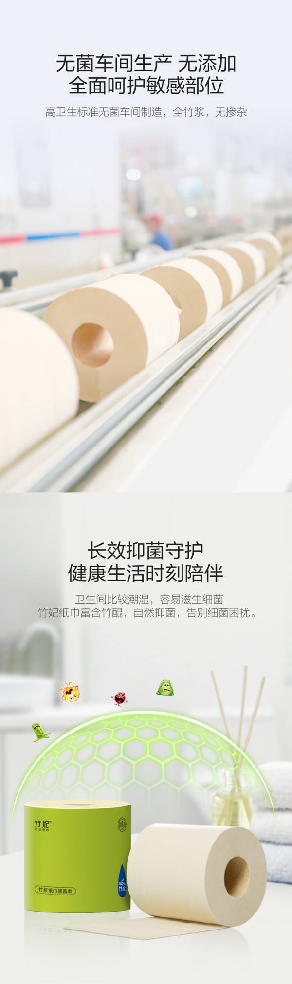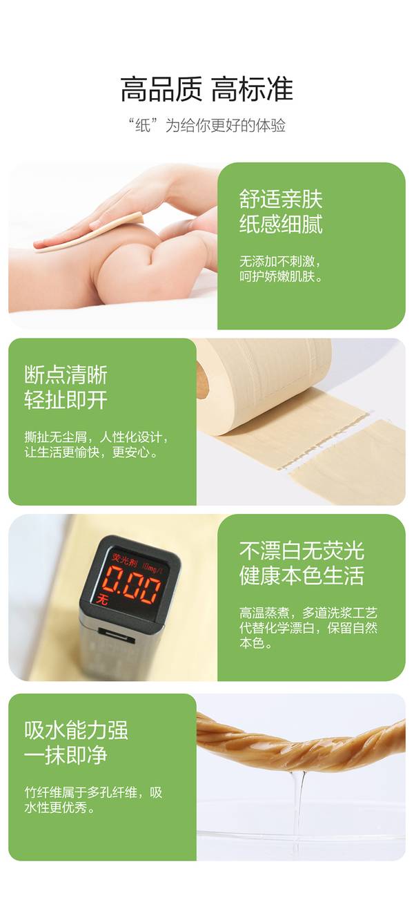 竹妃空芯卷纸家用实惠装卫生纸竹浆本色纸卷筒纸27卷150克