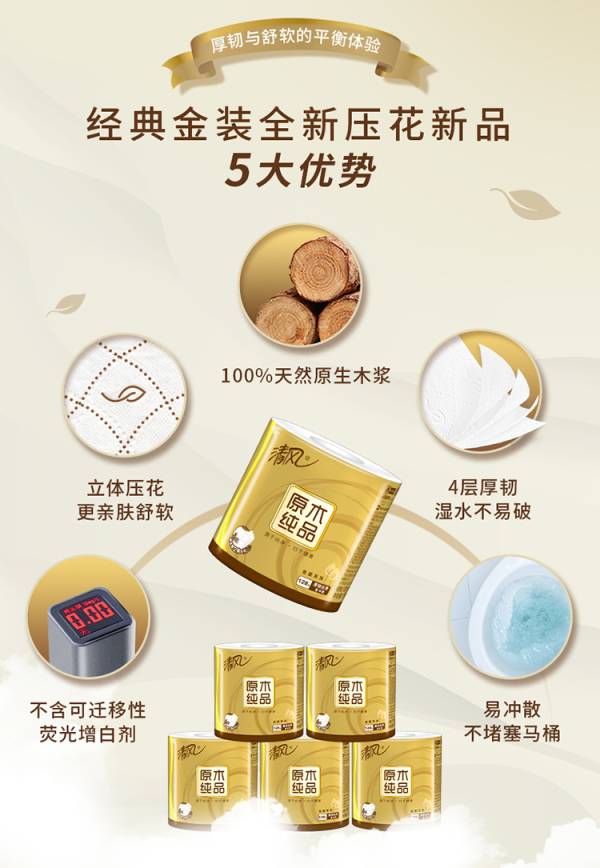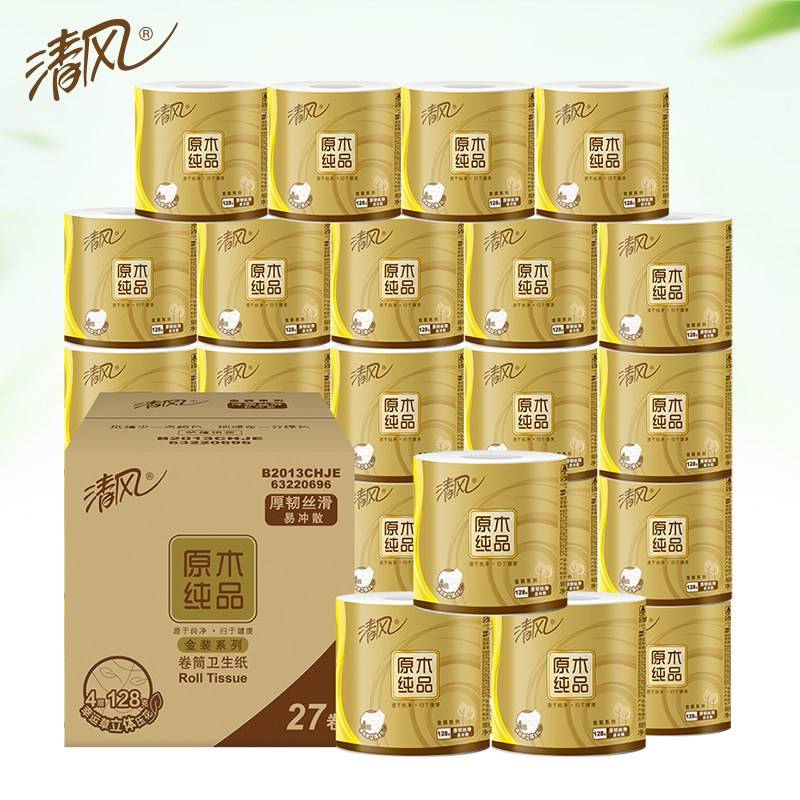 清风原木金装4层128g27卷(压花)