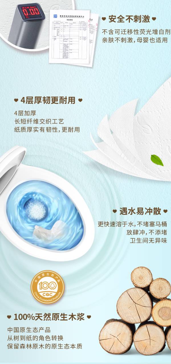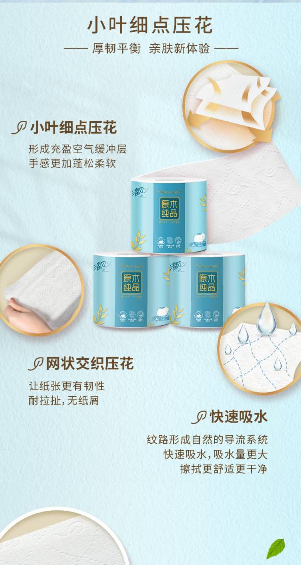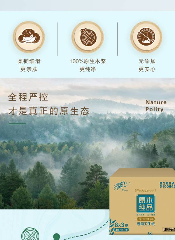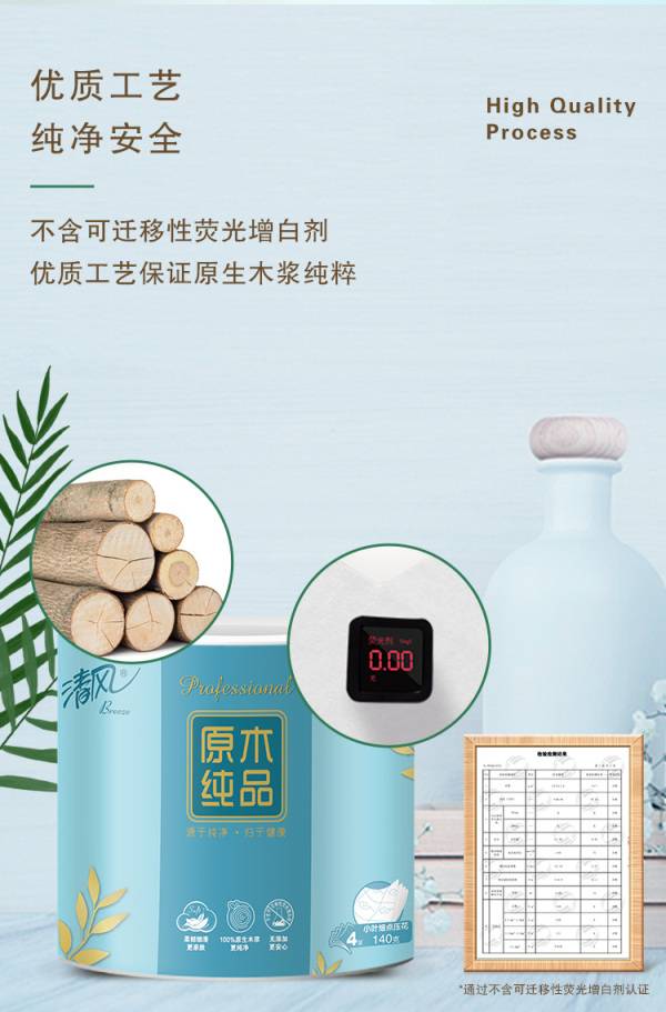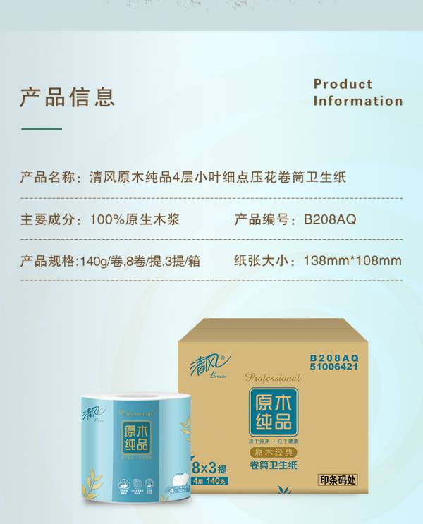 清风原木纯品4层小叶细点压花140g卷筒卫生纸B208AQ