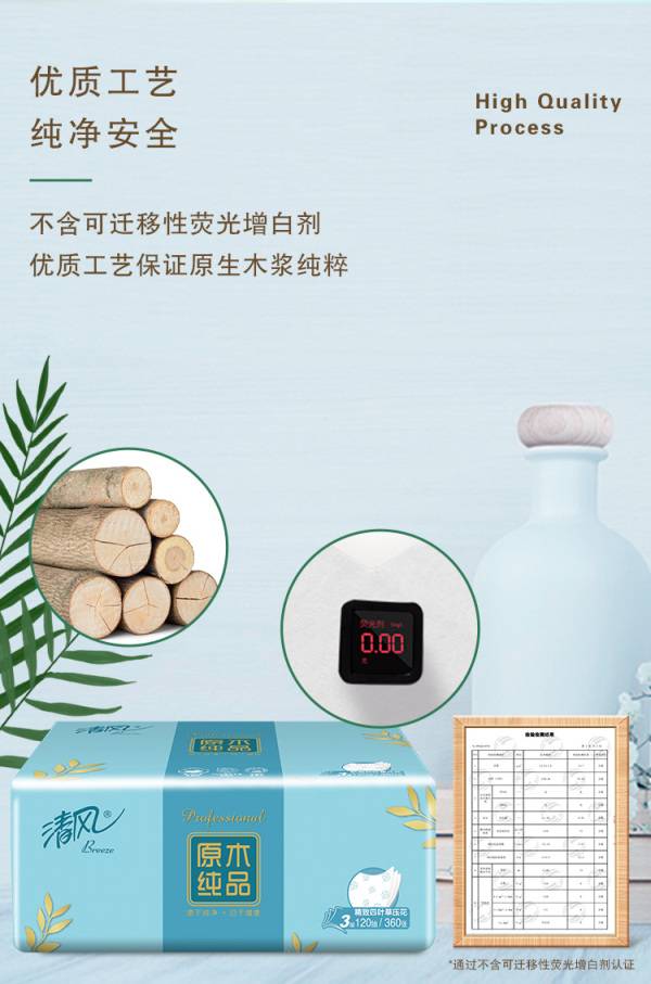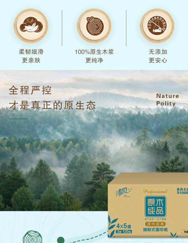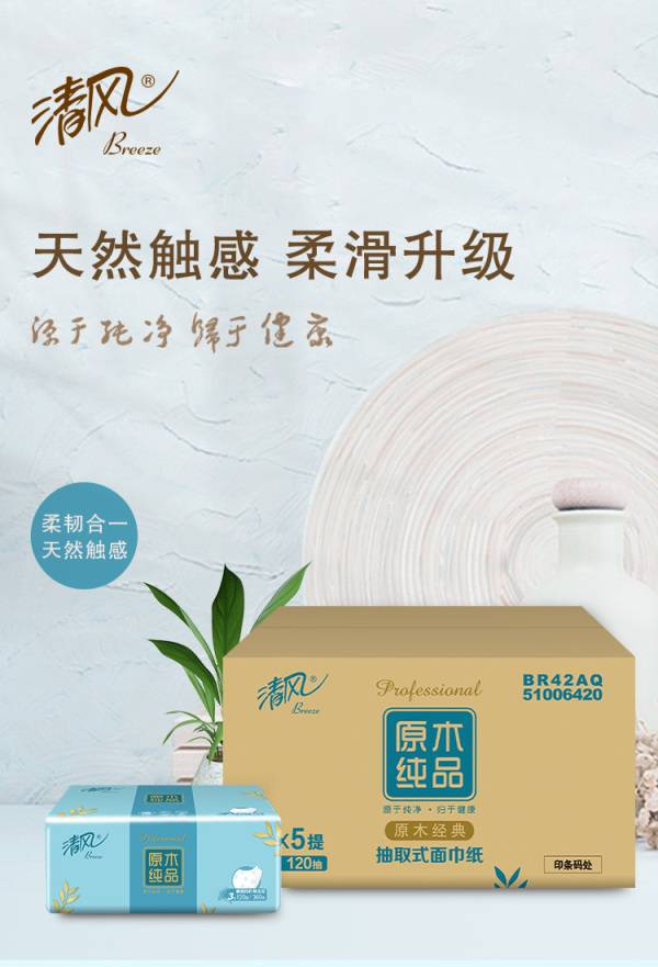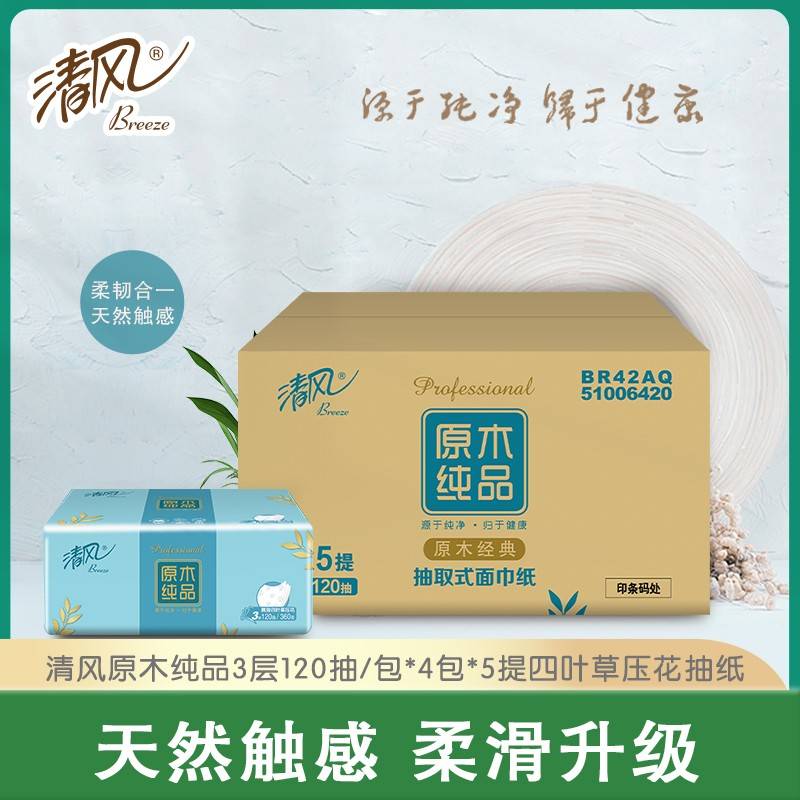 清风原木纯品3层四叶草压花120抽抽取式面巾纸BR42AQ