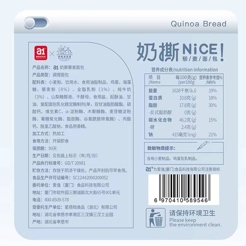 a1 奶撕藜麦面包490g手撕面包吐司早餐包营养代餐休闲零食
