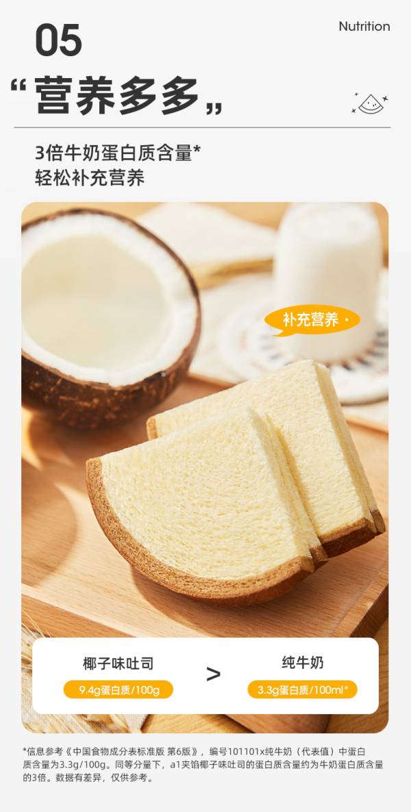 a1 椰子吐司480g 水果吐司夹心面包零食整箱网红早餐