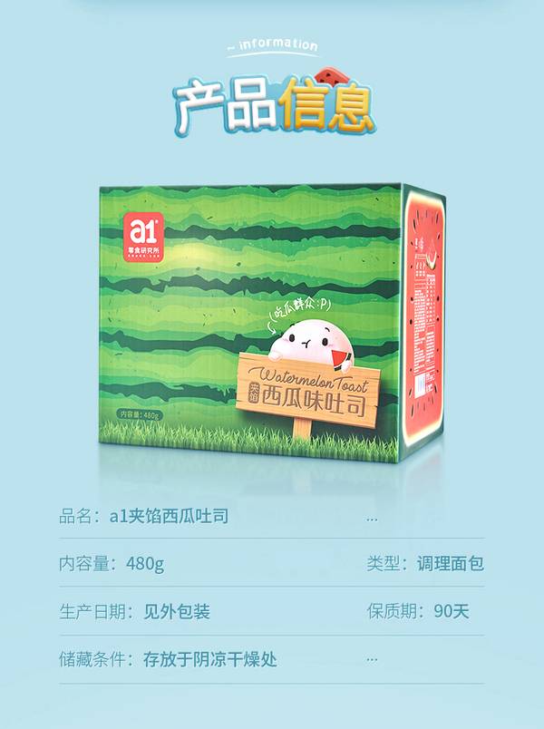 a1 西瓜吐司面包480g 网红零食整箱早餐夹心鸡蛋糕
