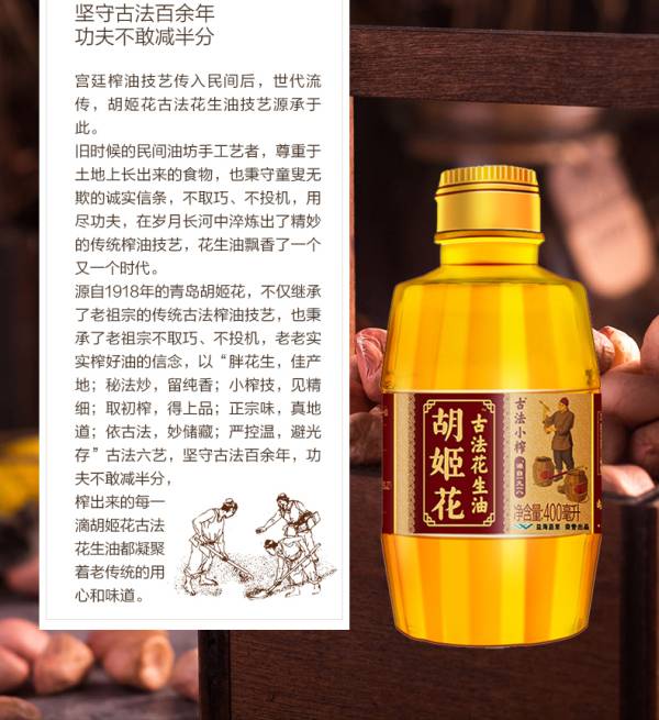 胡姬花 古法小榨花生油400ml/瓶 食用油
