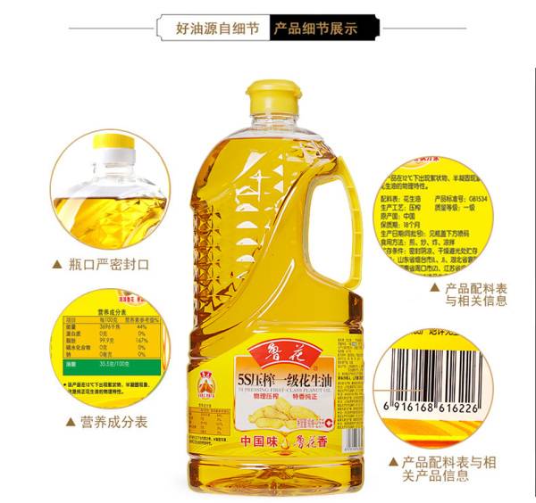 鲁花5S物理压榨花生油2.5L