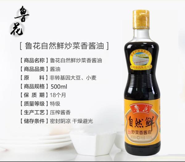 鲁花自然鲜炒菜香酱油500ML*3瓶