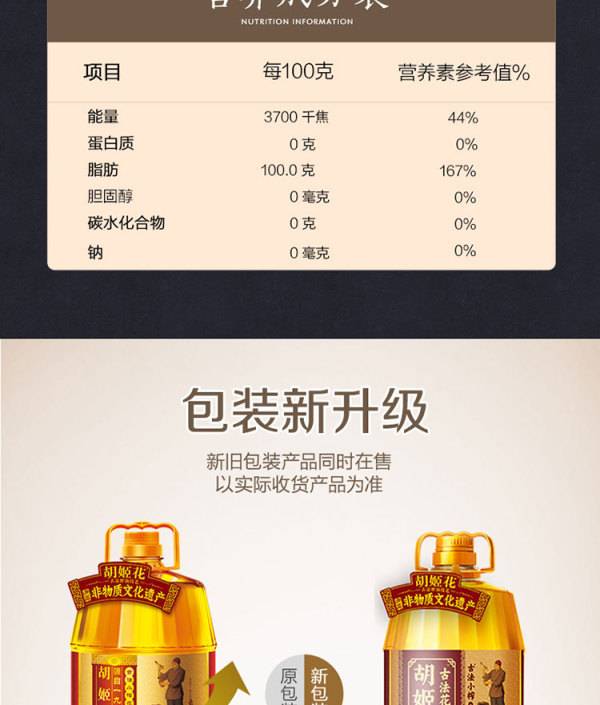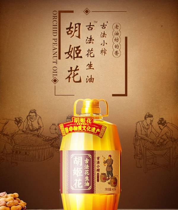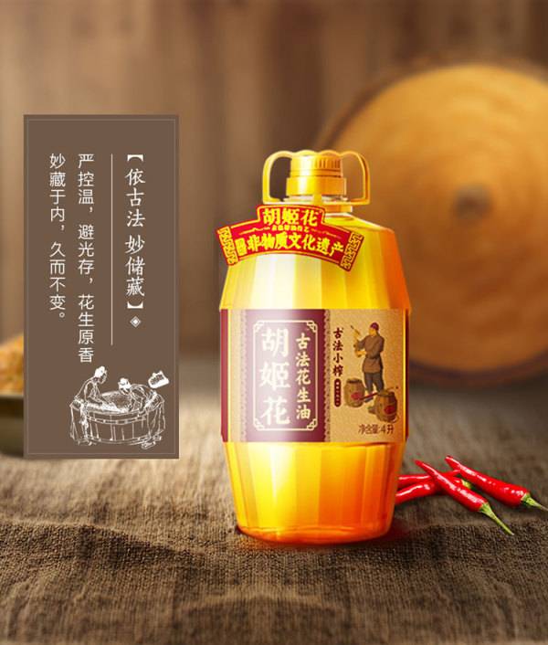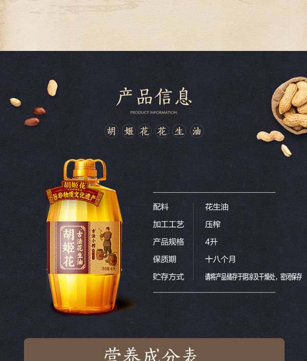 胡姬花 食用油 压榨 古法小榨 花生油 4L