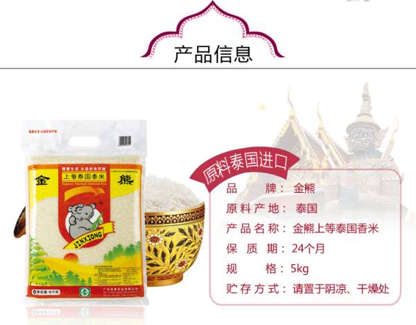 金熊上等泰国香米原料进口大米泰香米泰国茉莉香米5kg
