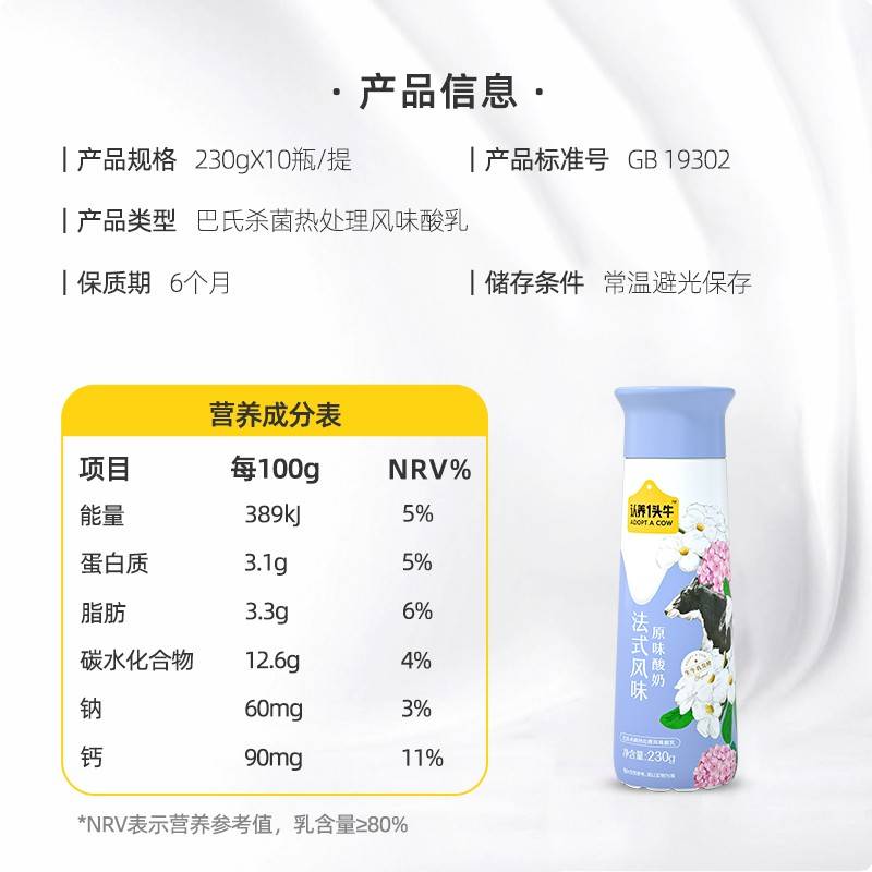 认养一.头牛PET原味酸奶230g*10瓶/箱 营养早餐牛奶