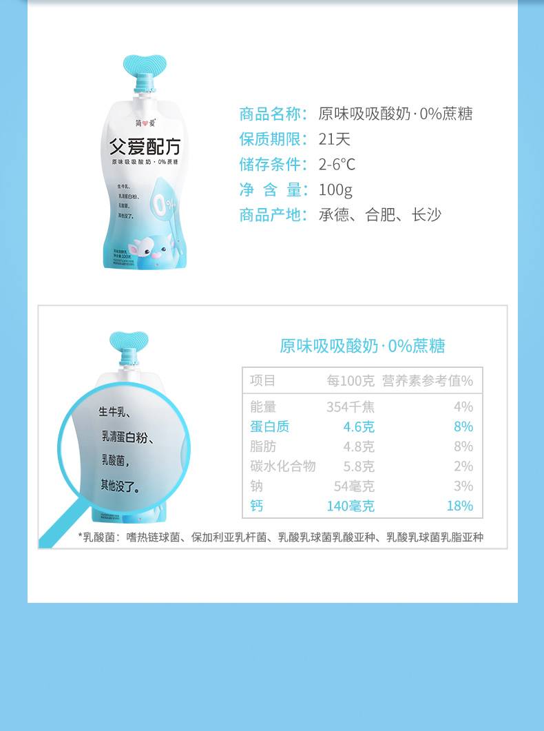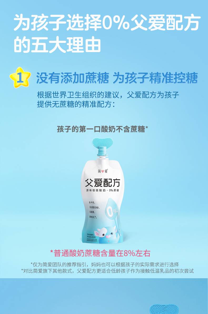 简爱 酸奶 父爱配方 0%蔗糖原味吸吸袋100g*12袋