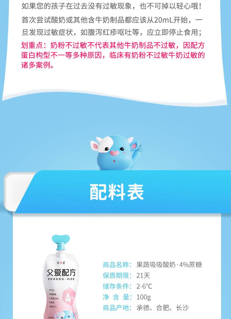 简爱 父爱配方吸吸酸奶-4%蔗糖100g*12
