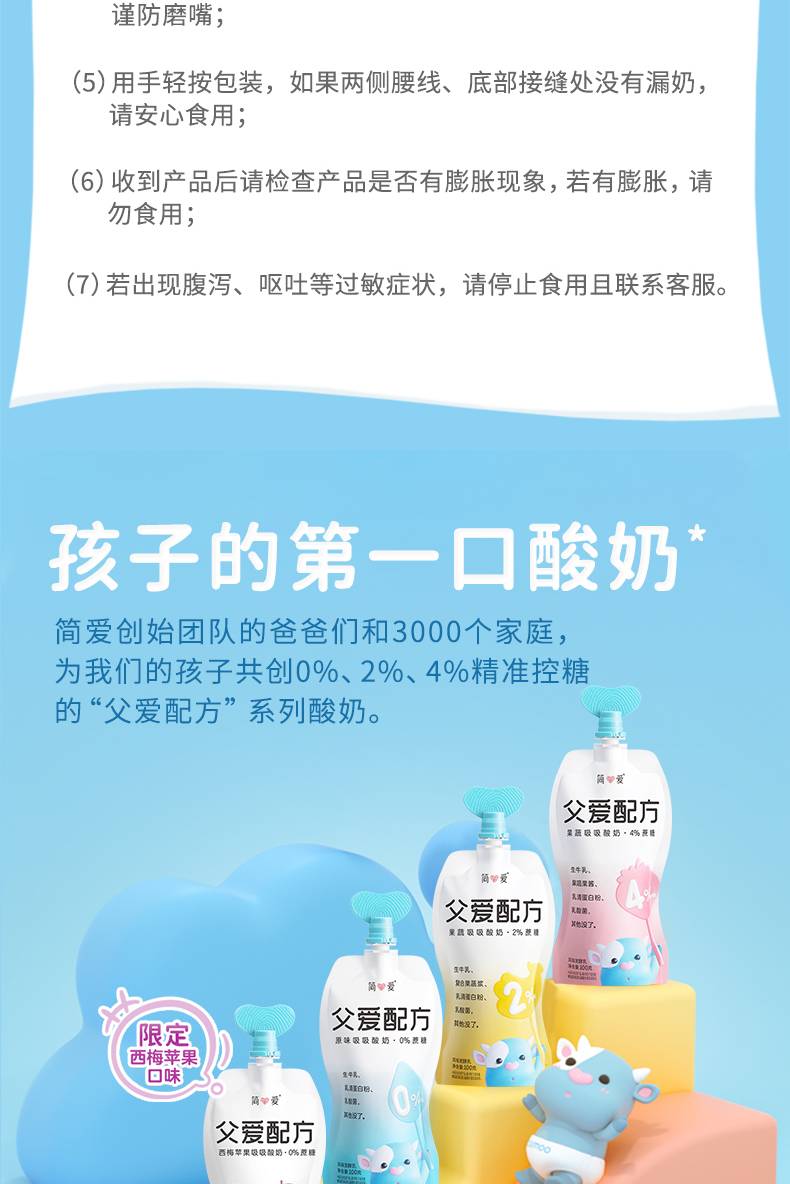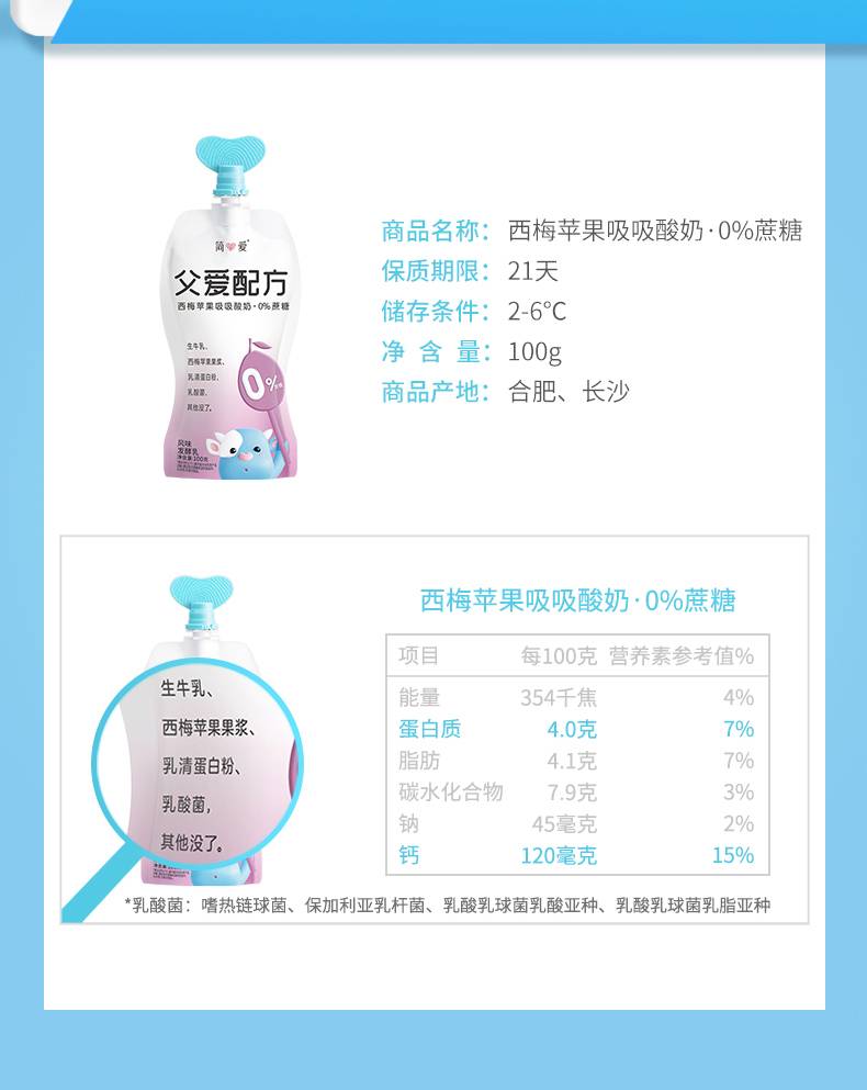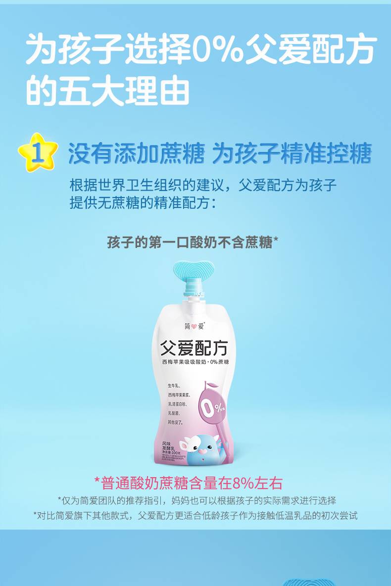 简爱 父爱配方西梅苹果吸吸酸奶0%蔗糖100g*12袋