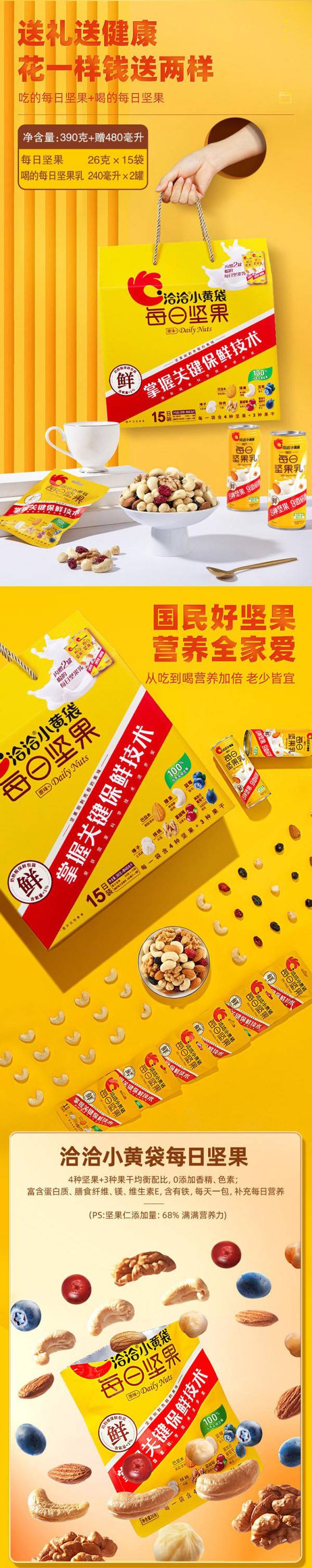 洽洽 每日坚果礼盒15日装-345g/盒(内含2罐坚果乳)