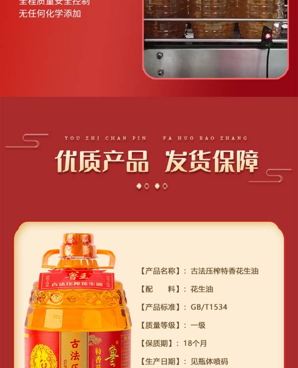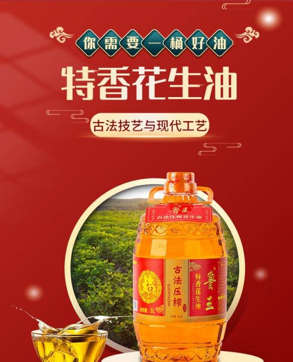 鲁王古法压榨特香花生油3L