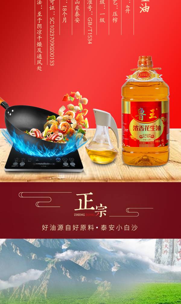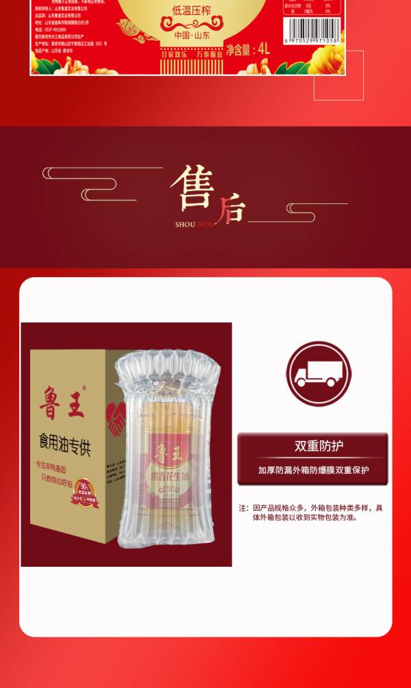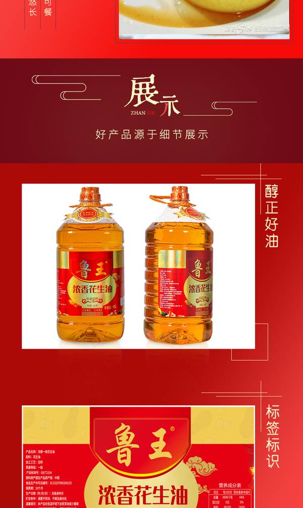 鲁王浓香花生油4L