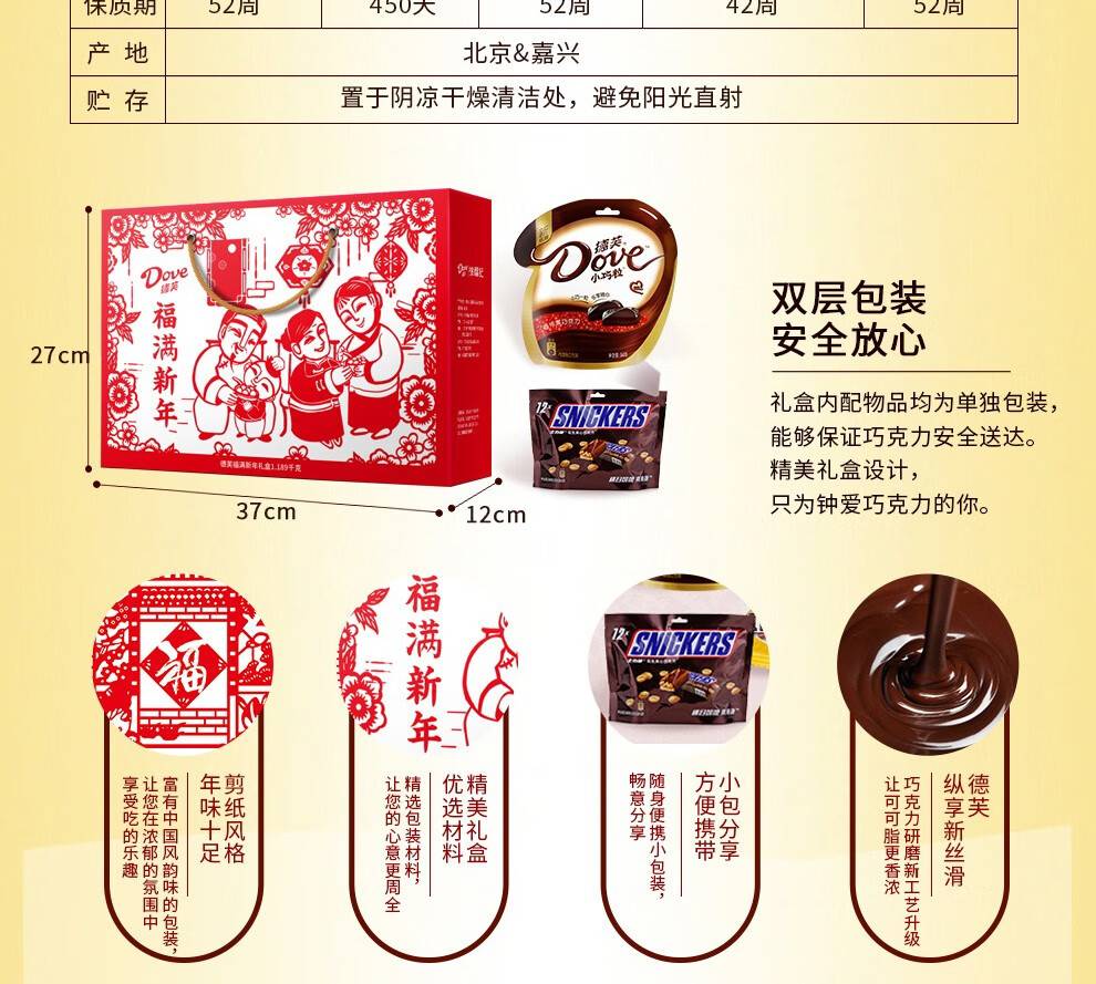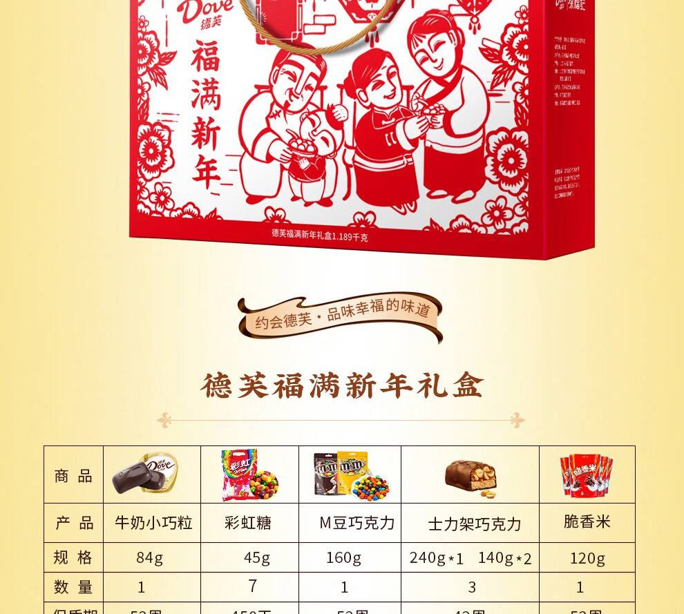 德芙巧克力糖果礼盒年年得福732g休闲零食喜糖大礼包