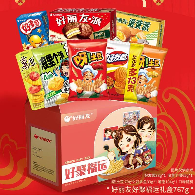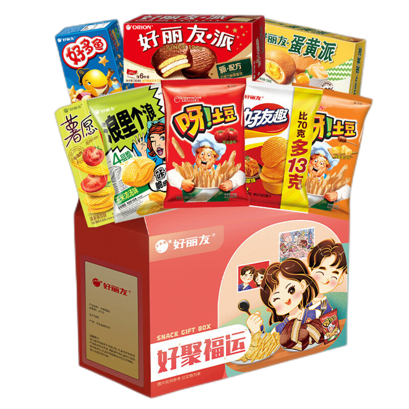 好丽友 零食大礼包巧克力派糕点薯片 好聚福运767g