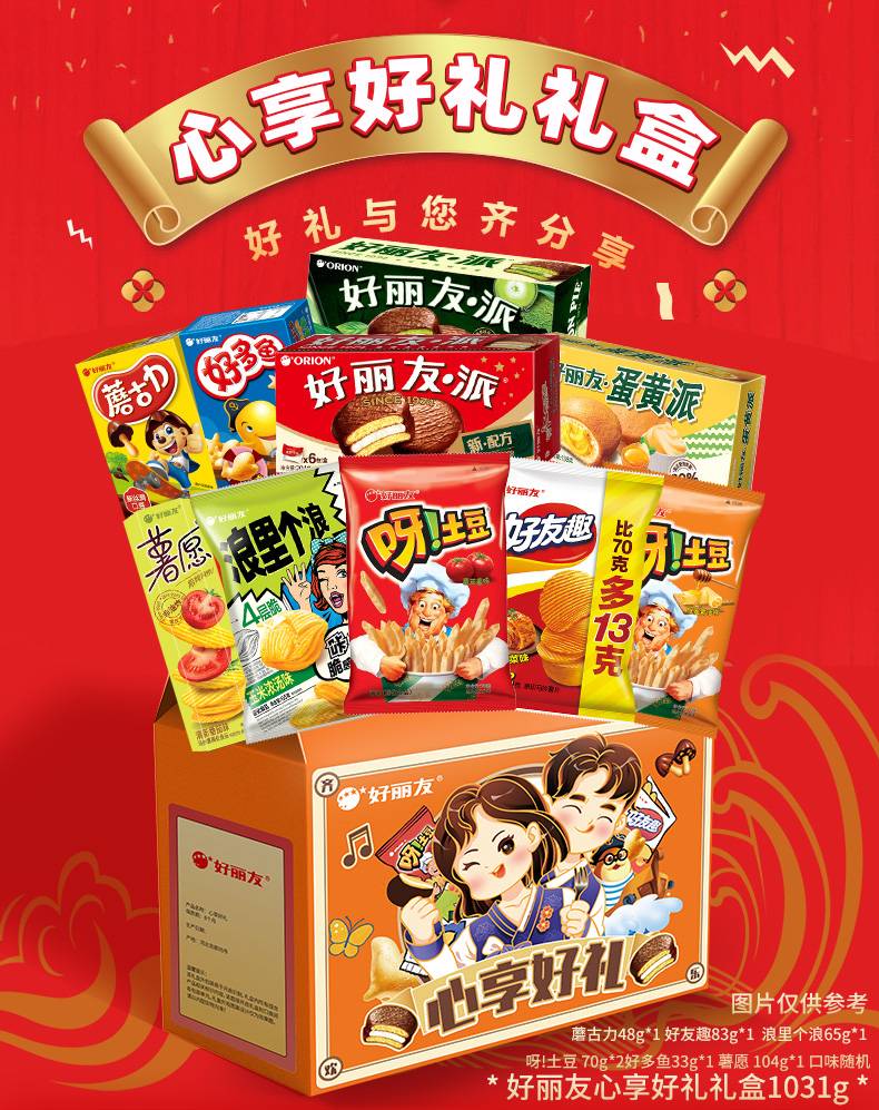 好丽友 零食大礼包巧克力派糕点薯片 心享好礼1031g