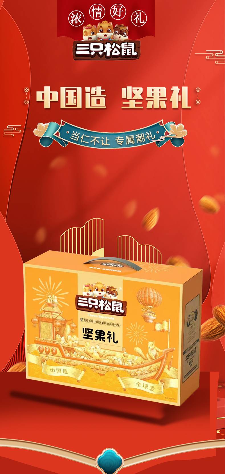 三只松鼠-鸿成礼坚果礼盒 1438g 坚果零食春节过年礼
