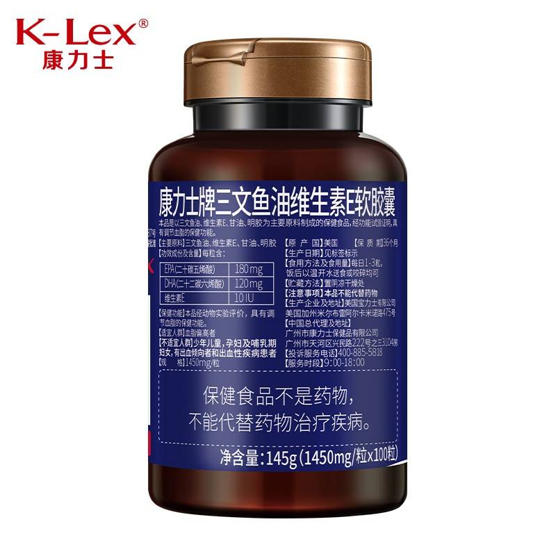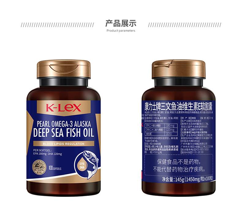 康力士牌三文鱼油维生素E软胶囊100粒 美国原瓶原装进口
