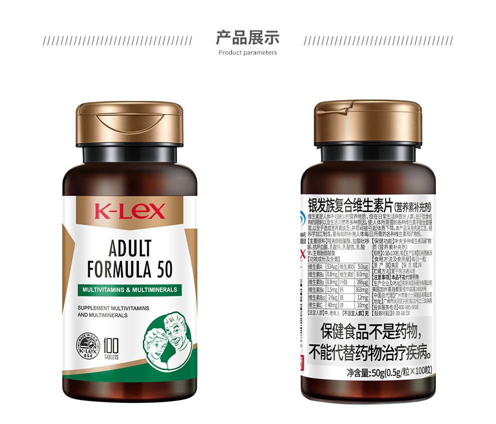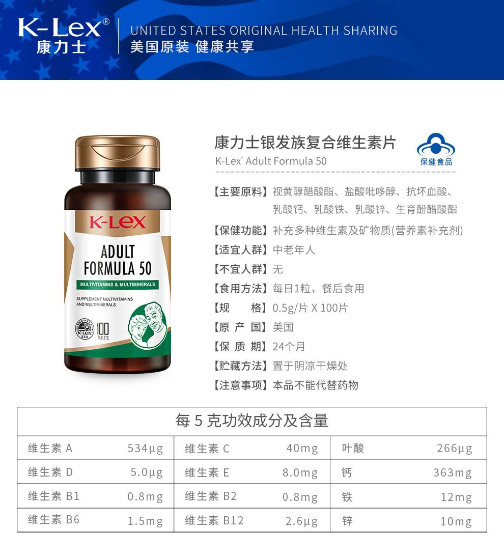 康力士美国进口中老年银发族12种复合维生素片矿物质片100片